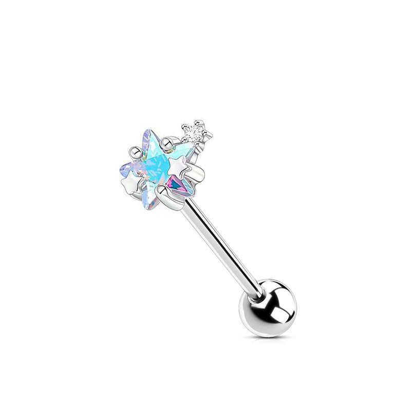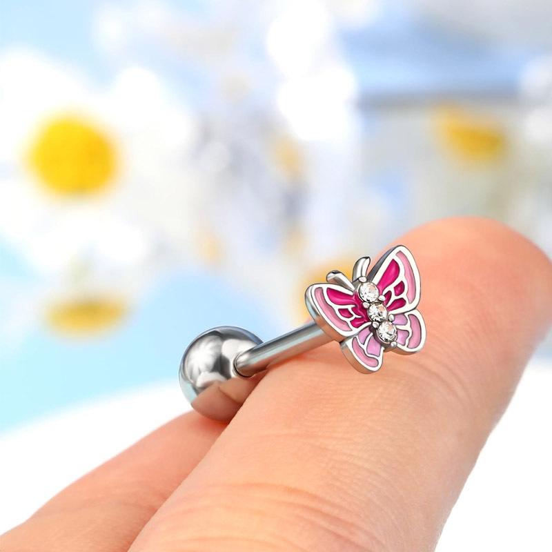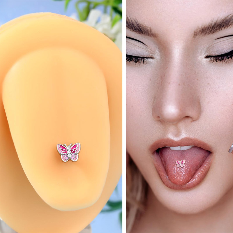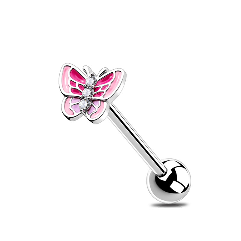 Новые оптовые украшения для пирсинга языка Amazon: цветные бабочки, кольца для языка из нержавеющей стали с цирконами AB в форме сердца.