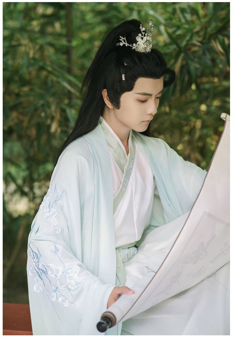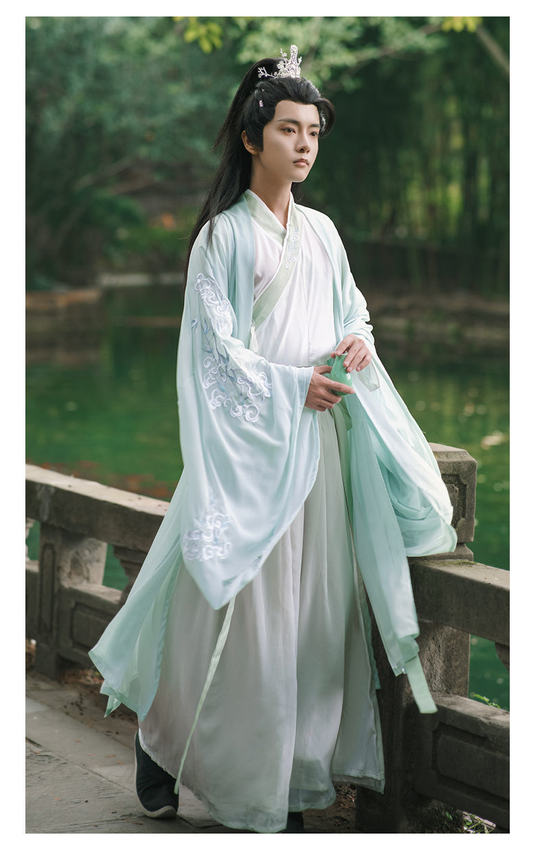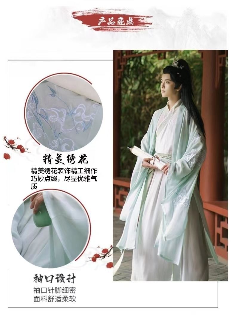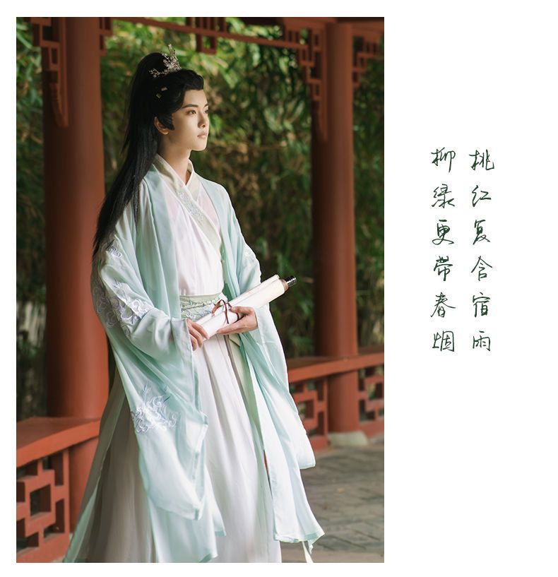 Мужской ханьфу 2025: новая модель в стиле династии Вэй-Цзинь, рубашка с перекрестным воротником, до талии, с широкими рукавами, свежий и элегантный, в стиле фэнтези, для студентов, древний костюм, мужская одежда