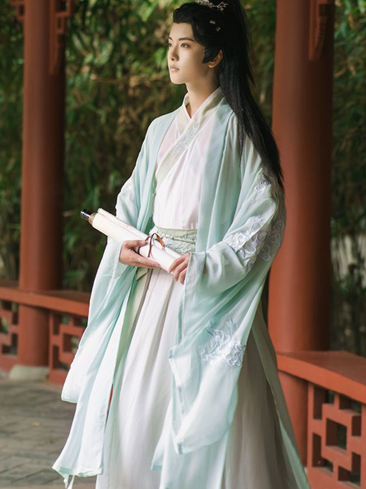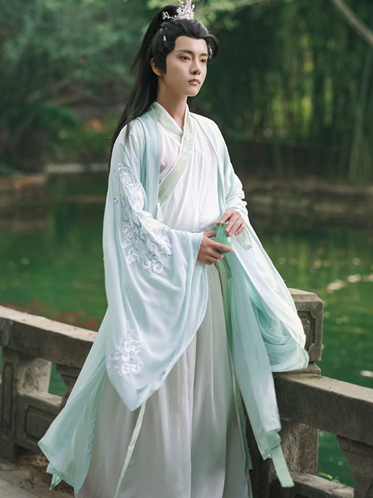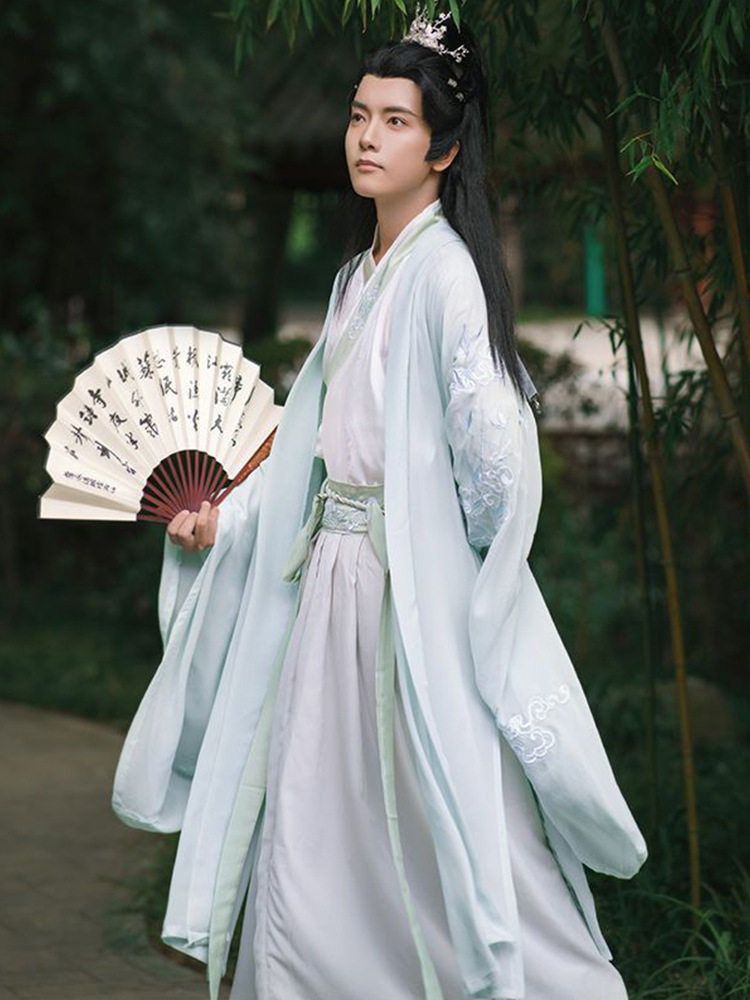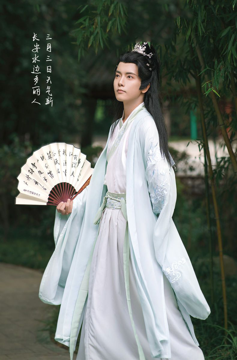 Мужской ханьфу 2025: новая модель в стиле династии Вэй-Цзинь, рубашка с перекрестным воротником, до талии, с широкими рукавами, свежий и элегантный, в стиле фэнтези, для студентов, древний костюм, мужская одежда