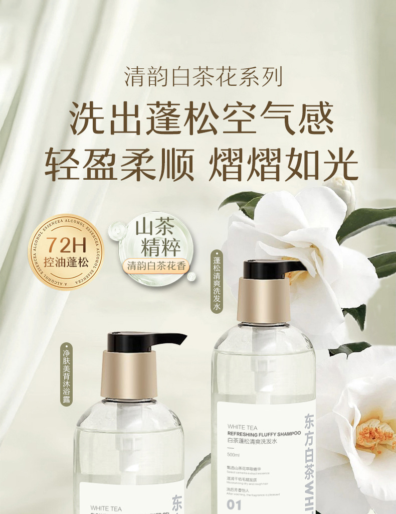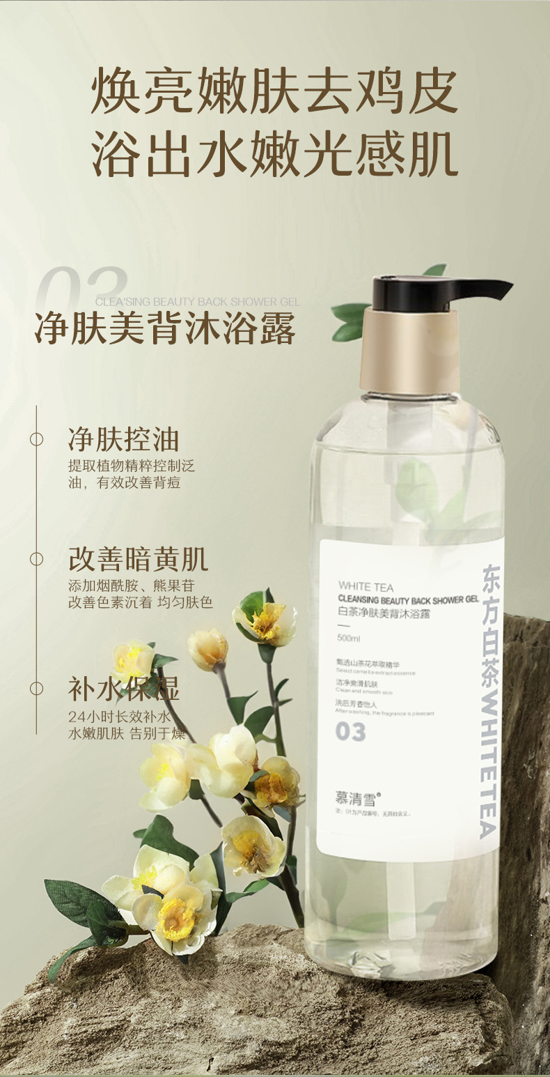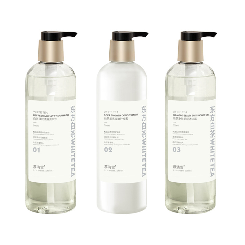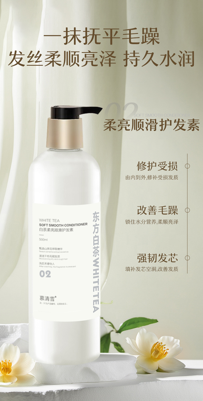 Му Цинсюэ белый чай пушистый освежающий шампунь 500ML; Mu Qingxue White Tea для очищения кожи лосьон для душа 500ML; Му Цинсюэ белый чай мягкий и гладкий кондиционер 500ML