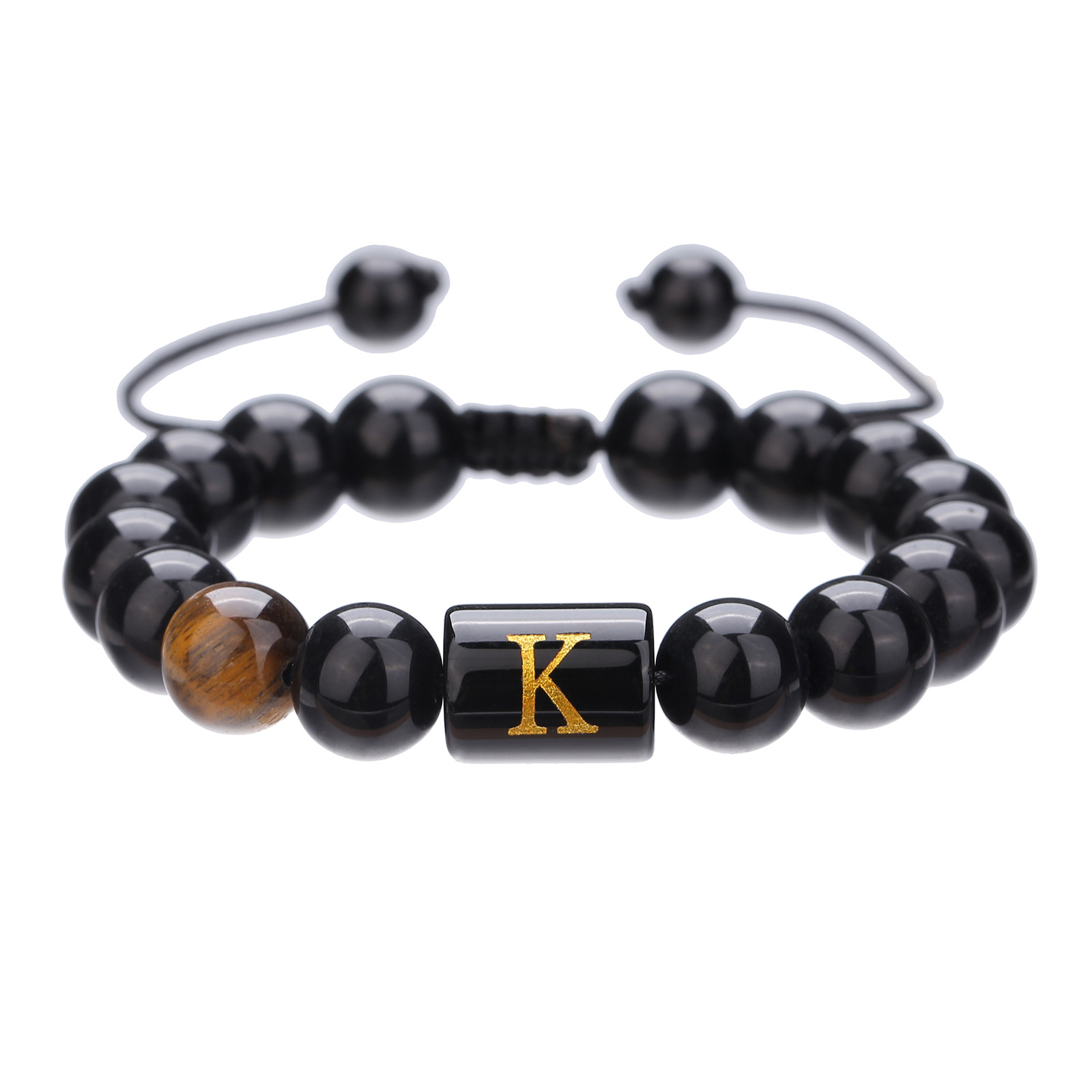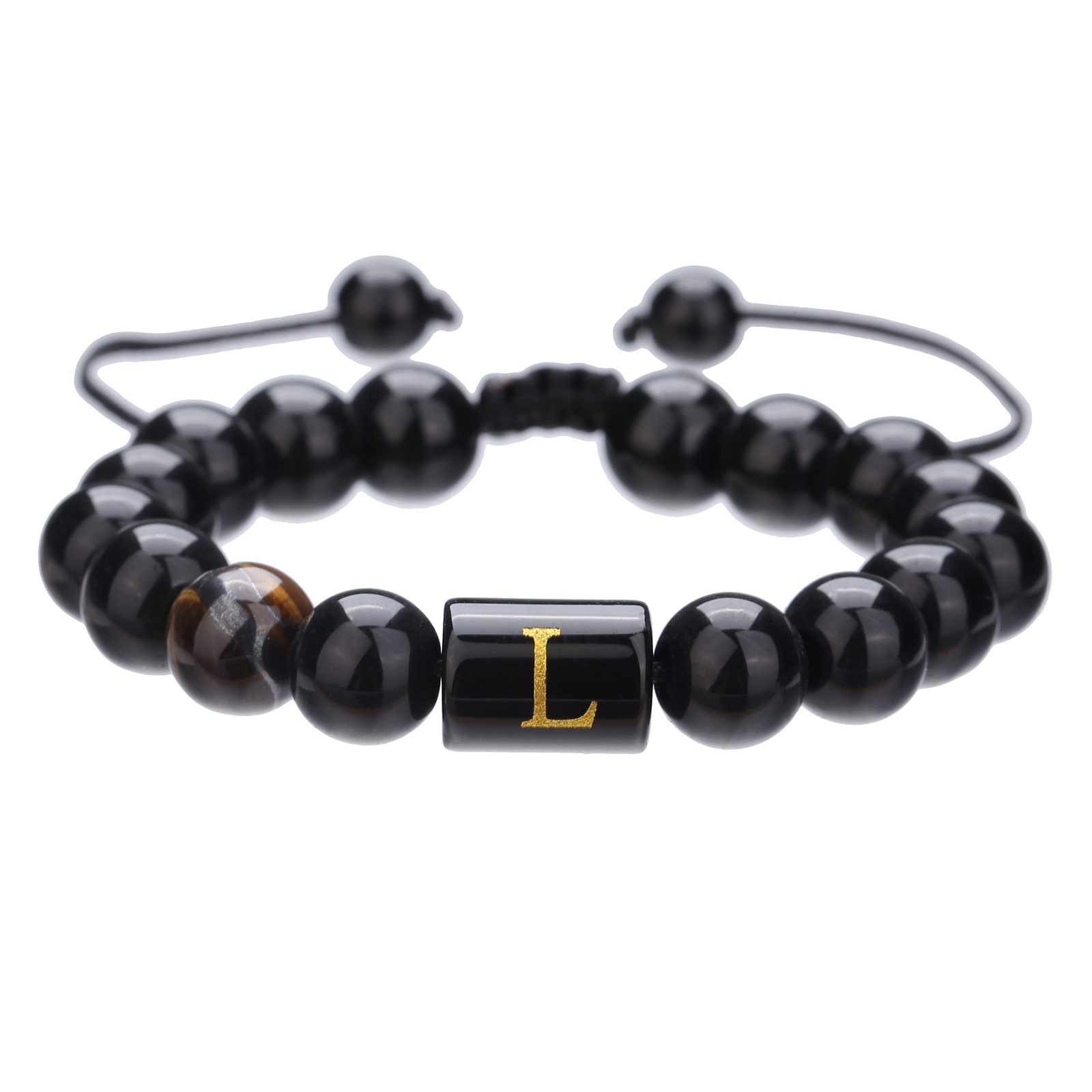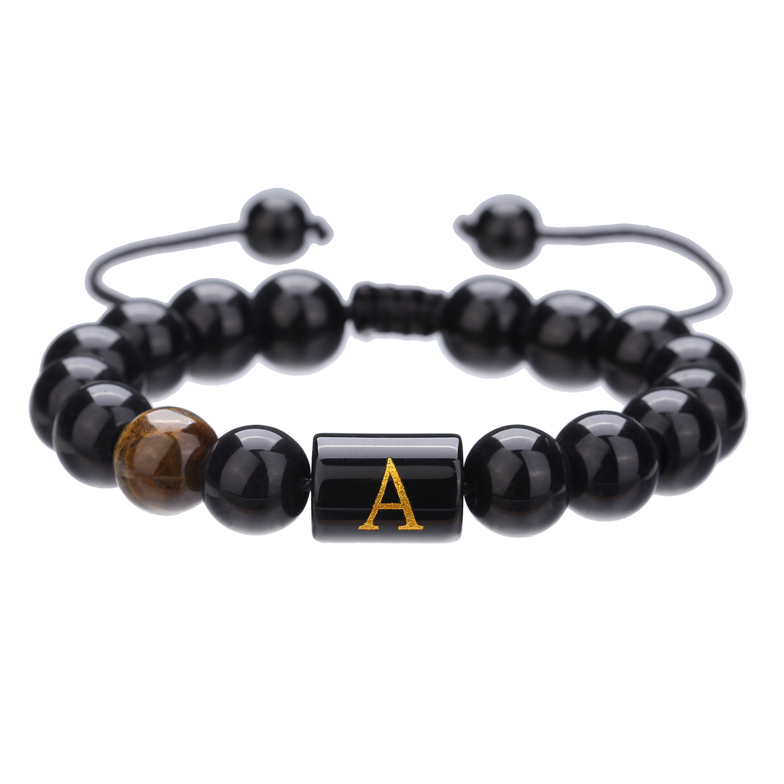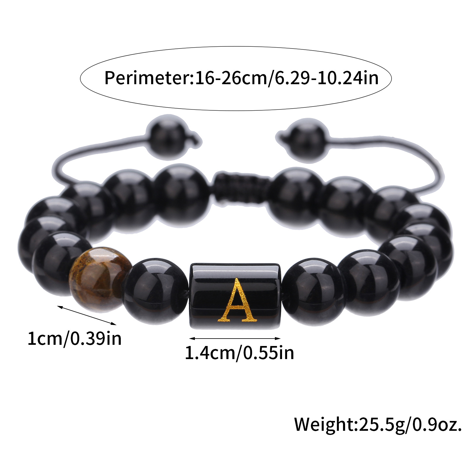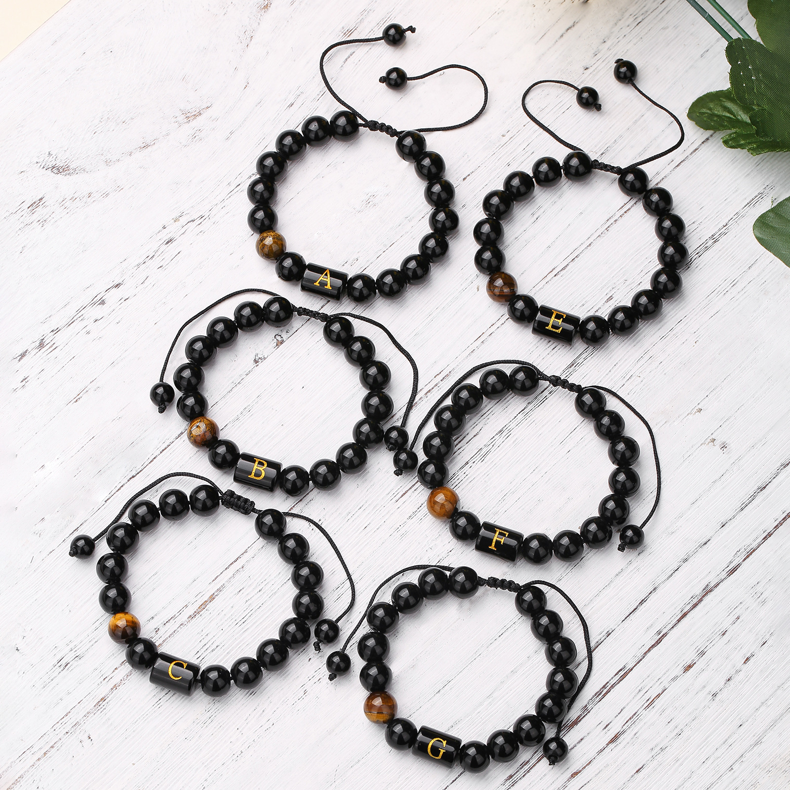 Браслет из бисера, 26 букв, черные бриллиантовые бусины, тигровый глаз, плетеный браслет для пары, регулируемый браслет, мужские украшения