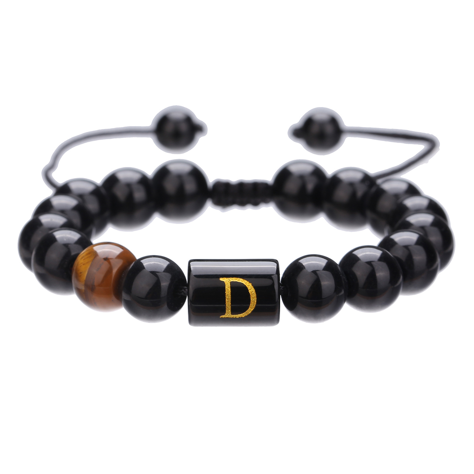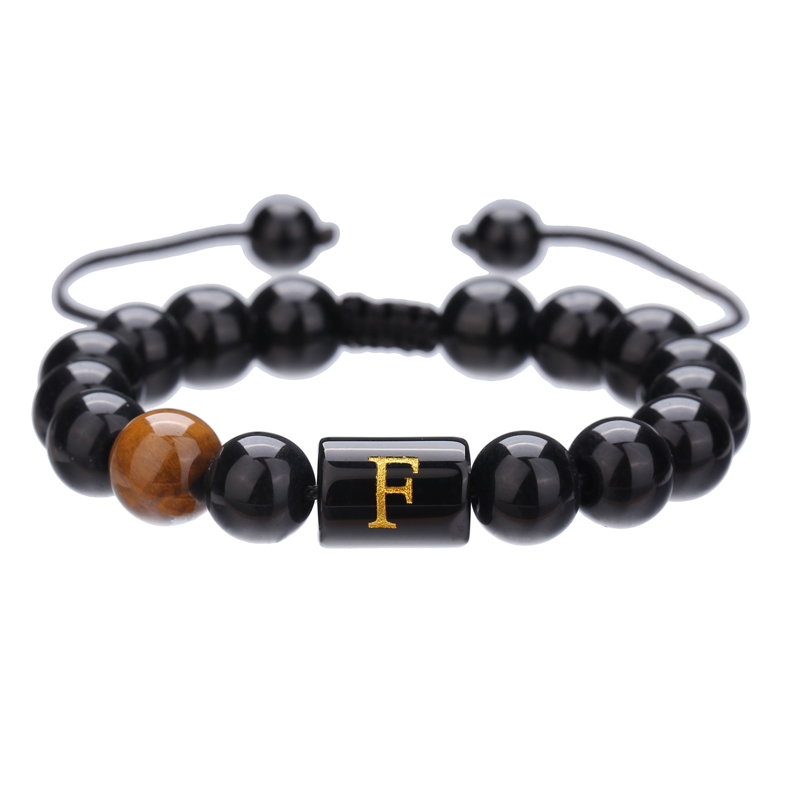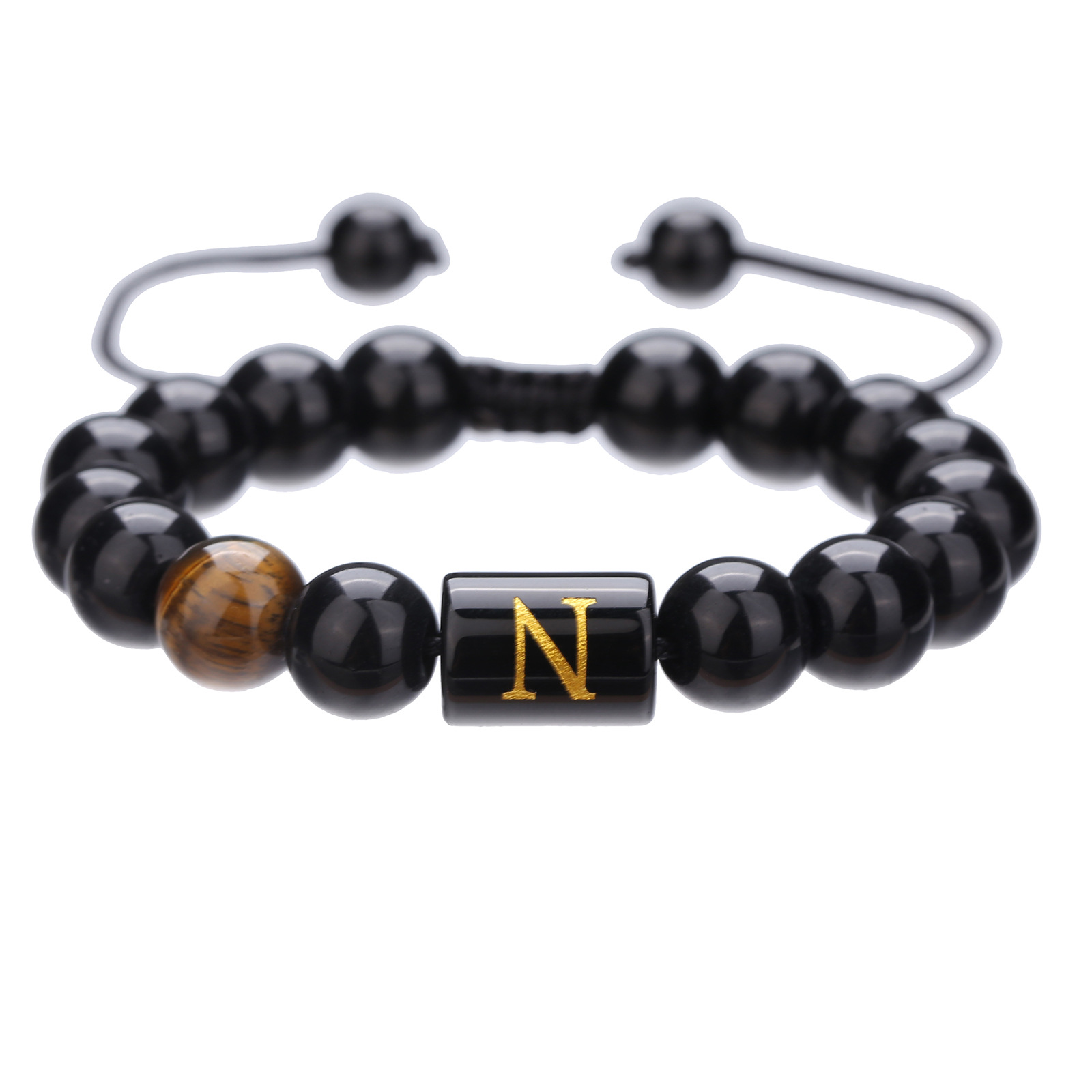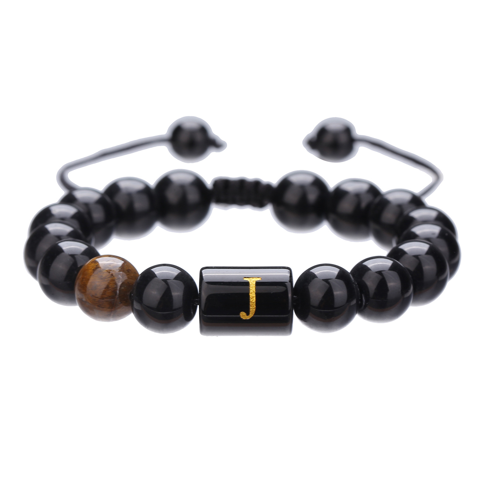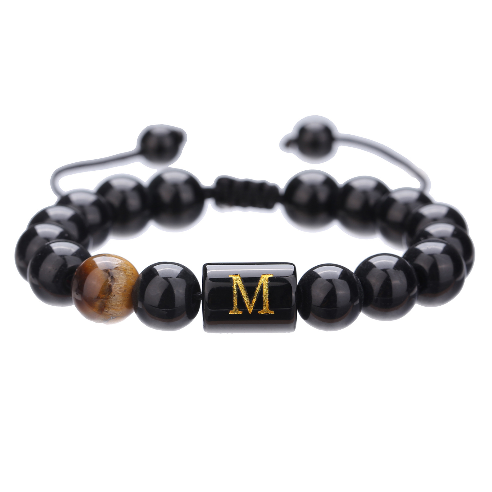 Браслет из бисера, 26 букв, черные бриллиантовые бусины, тигровый глаз, плетеный браслет для пары, регулируемый браслет, мужские украшения