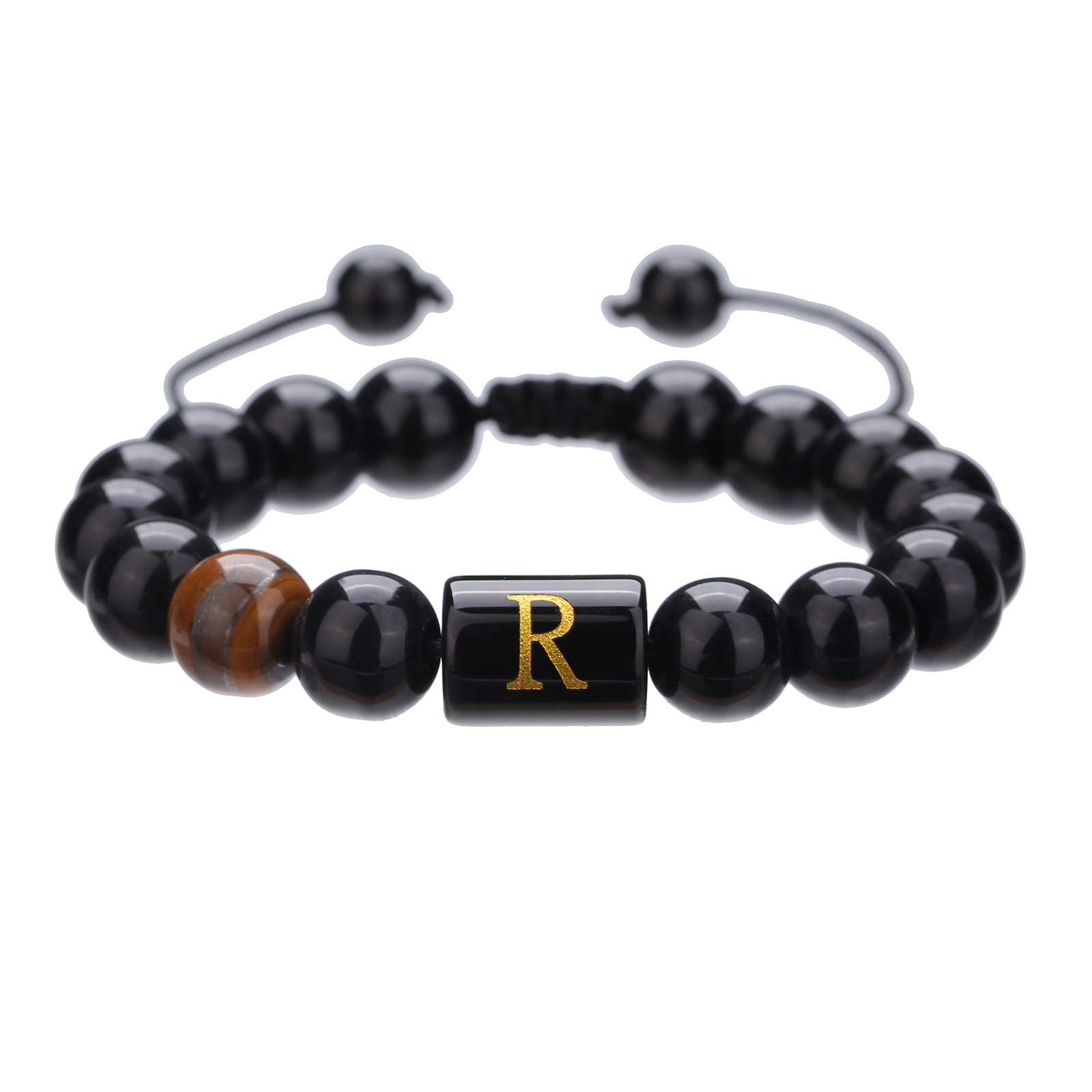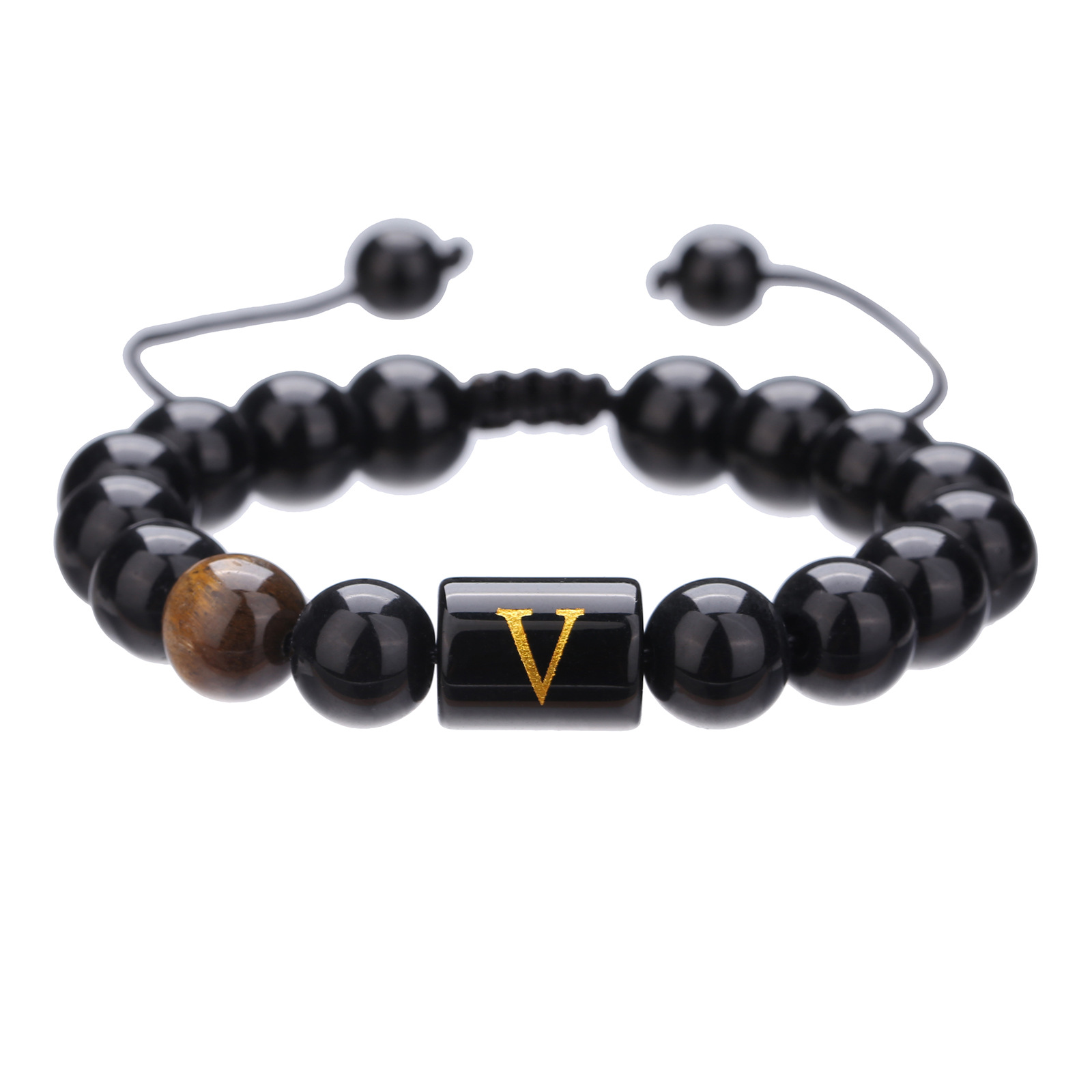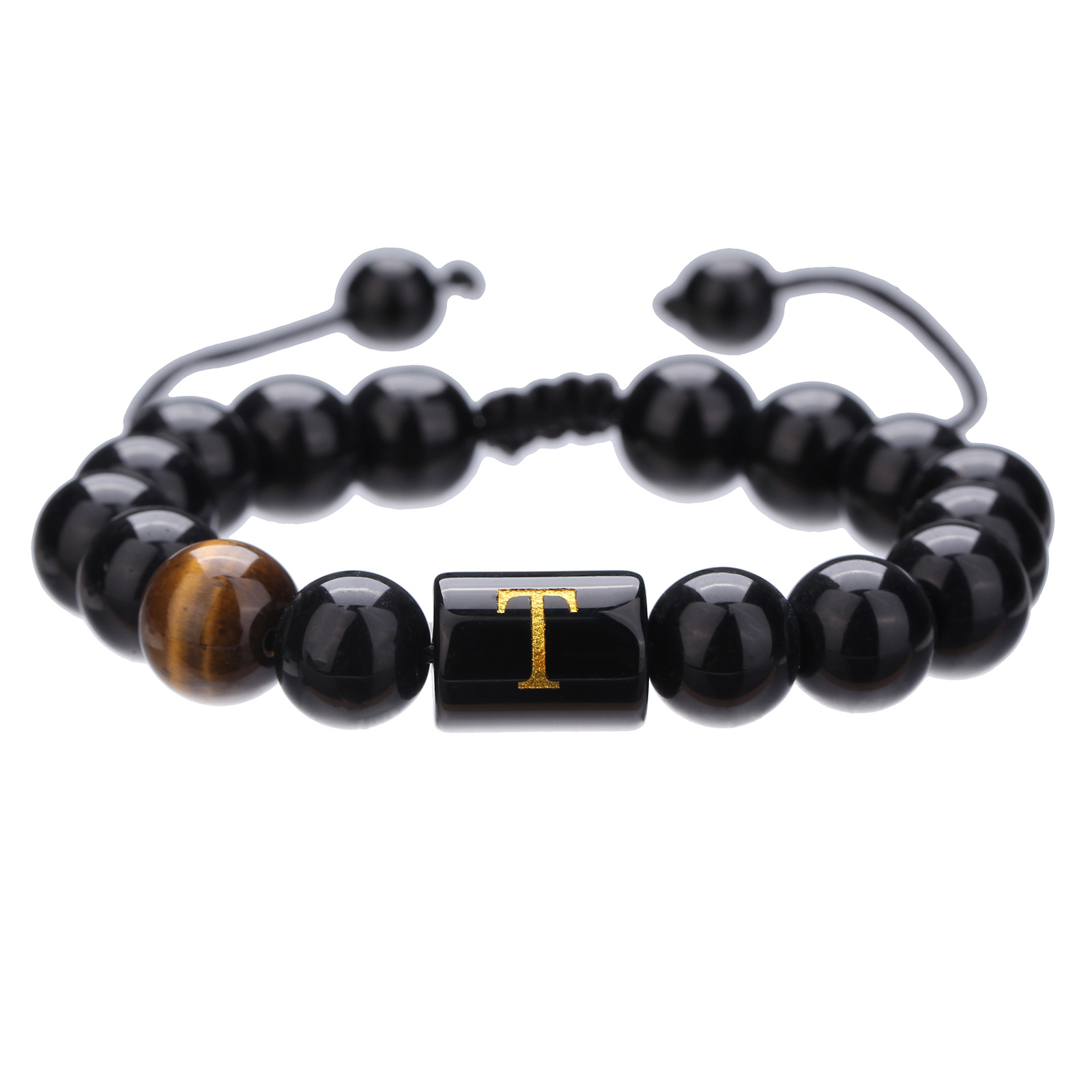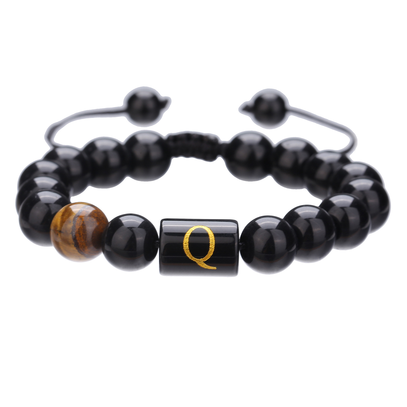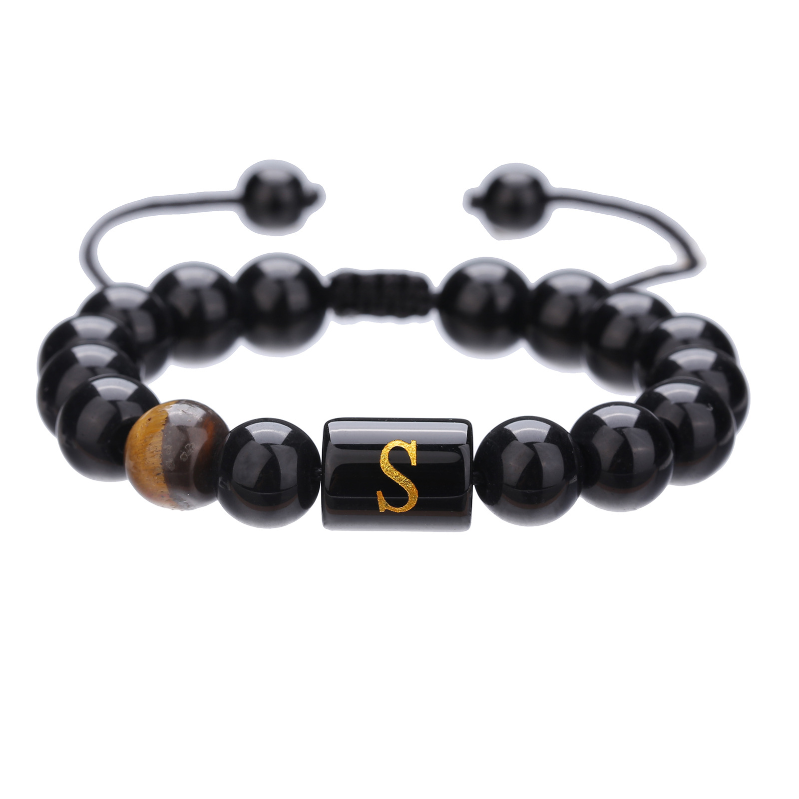 Браслет из бисера, 26 букв, черные бриллиантовые бусины, тигровый глаз, плетеный браслет для пары, регулируемый браслет, мужские украшения