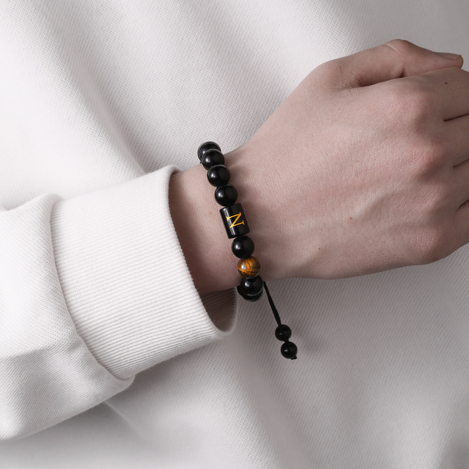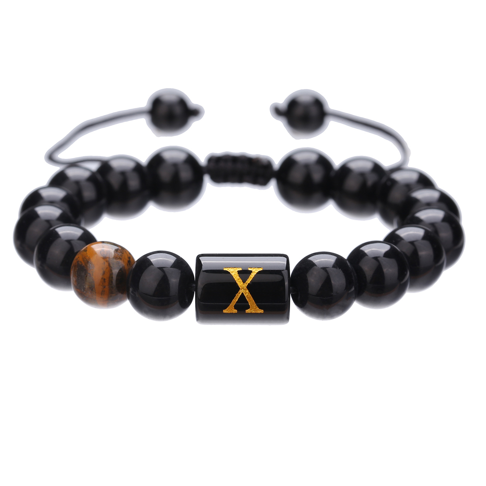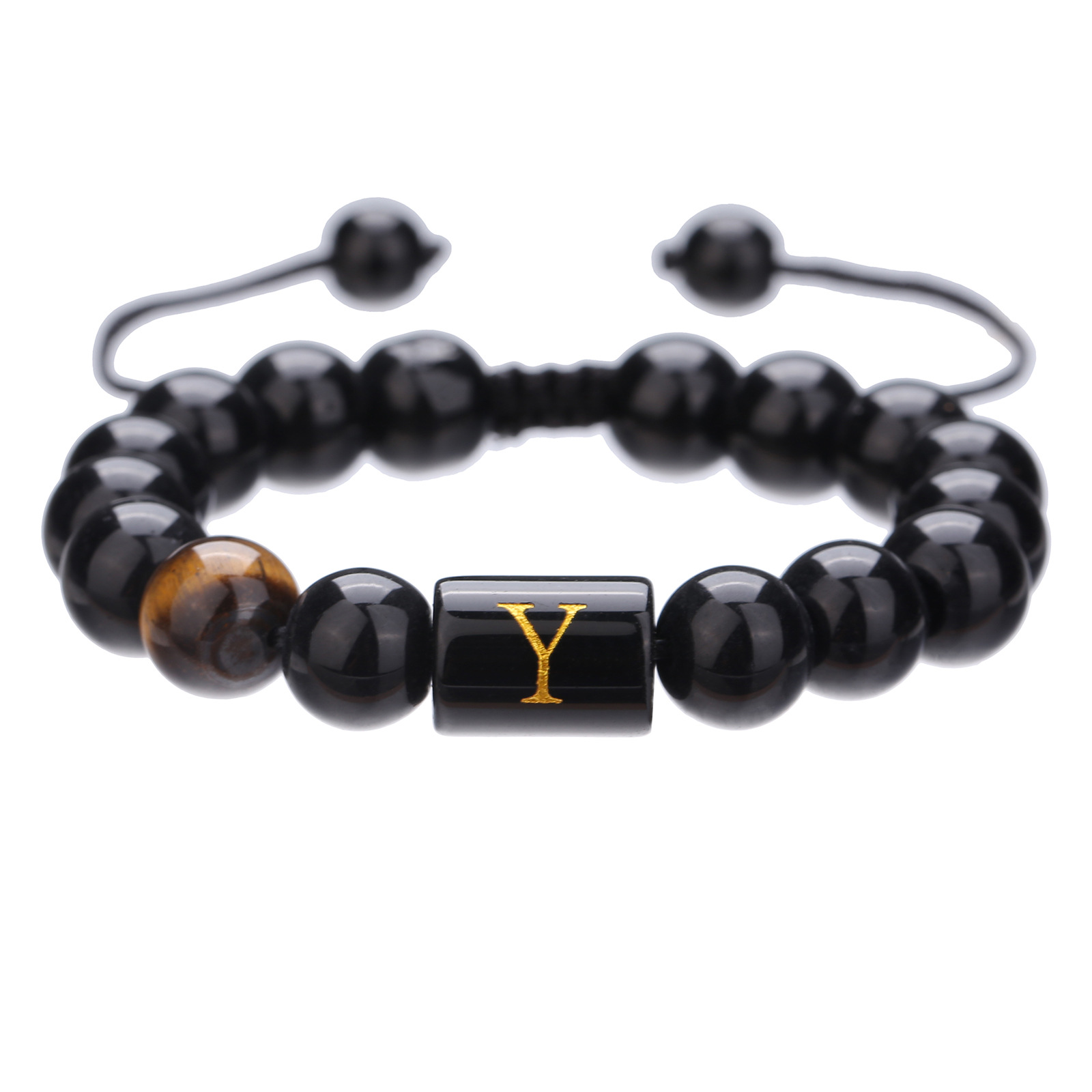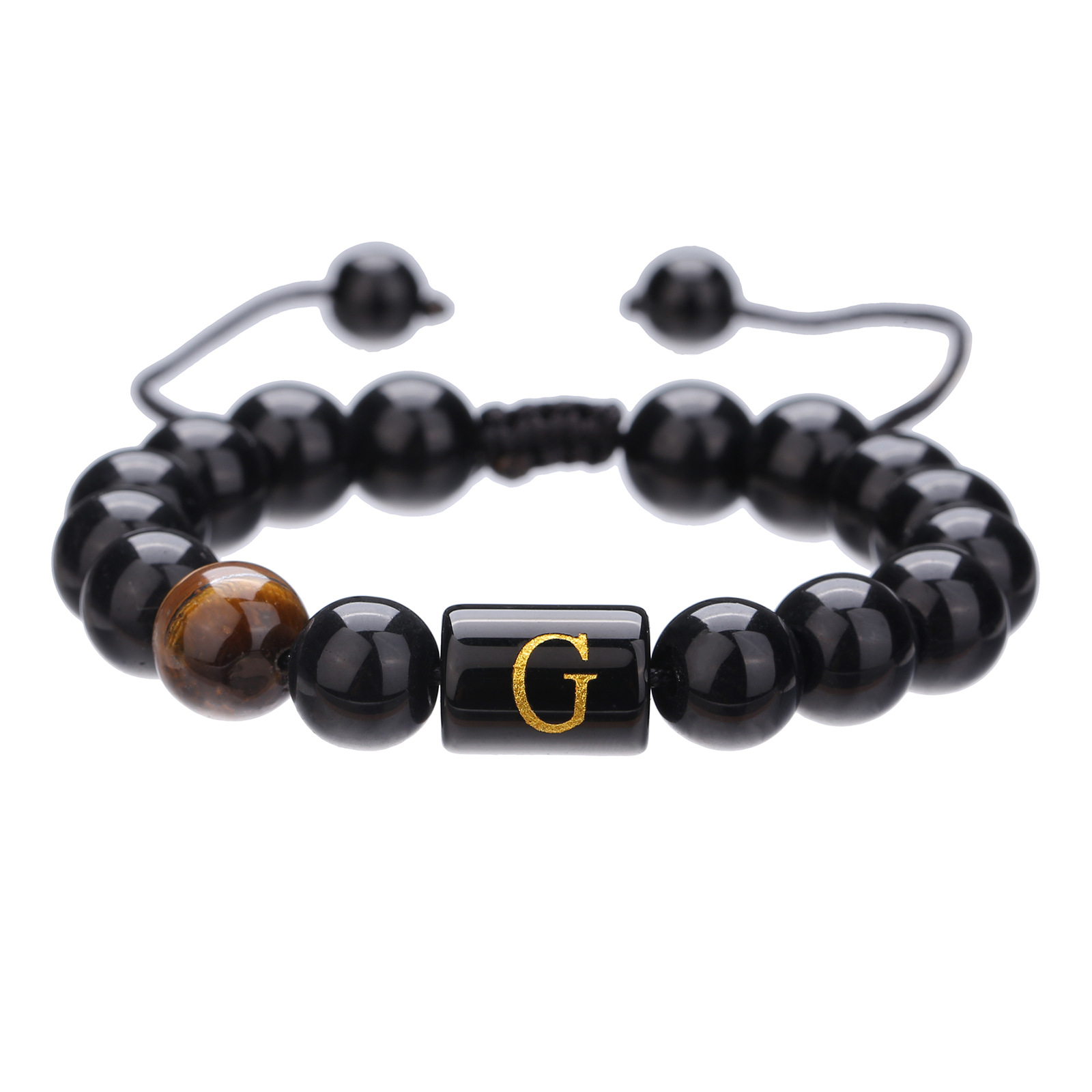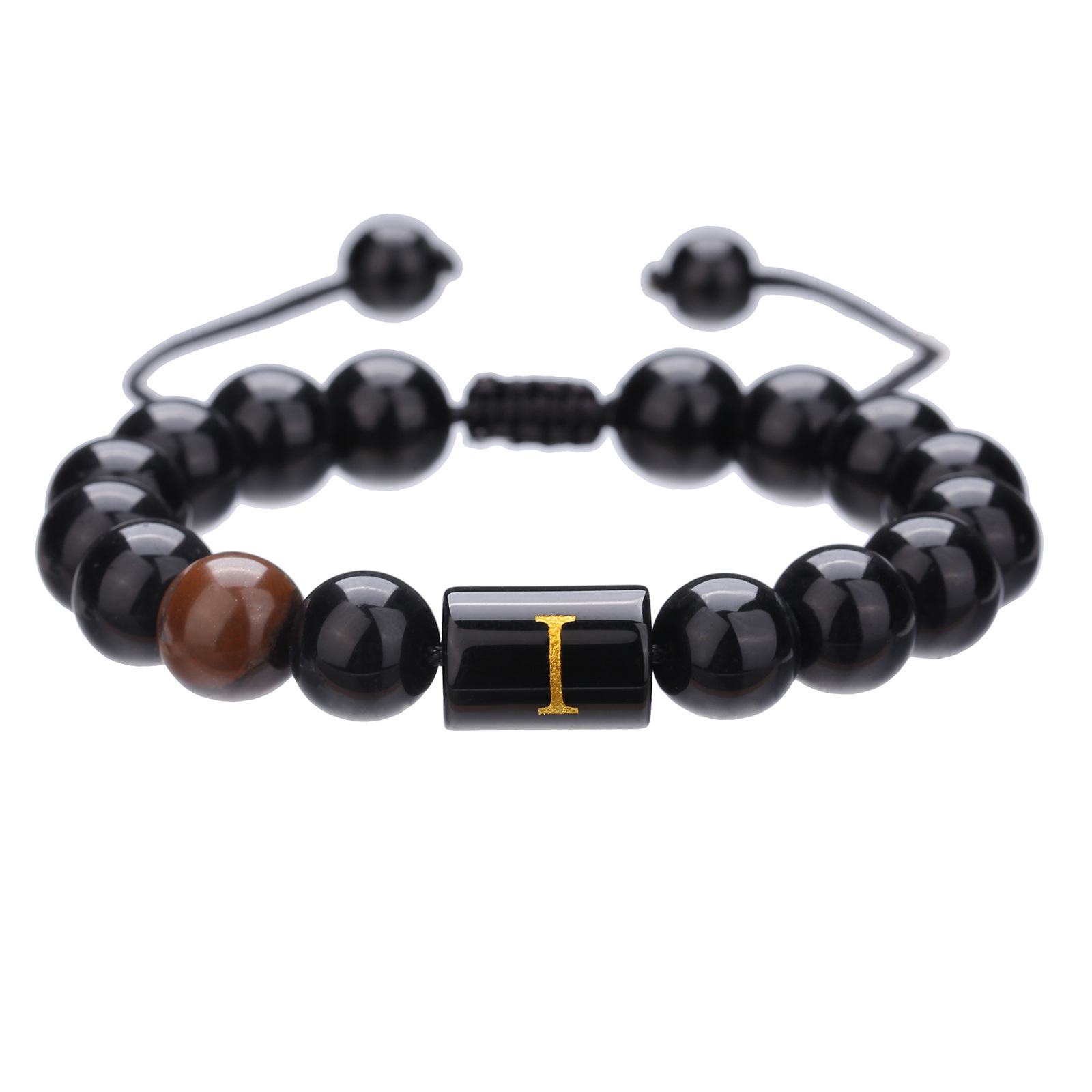 Браслет из бисера, 26 букв, черные бриллиантовые бусины, тигровый глаз, плетеный браслет для пары, регулируемый браслет, мужские украшения