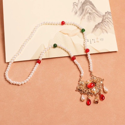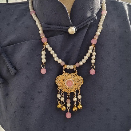 Китайский стиль одежды подвески Hanfu лошадь юбка ожерелье с длинным облаком воротник ретро жемчужный кулон древний стиль