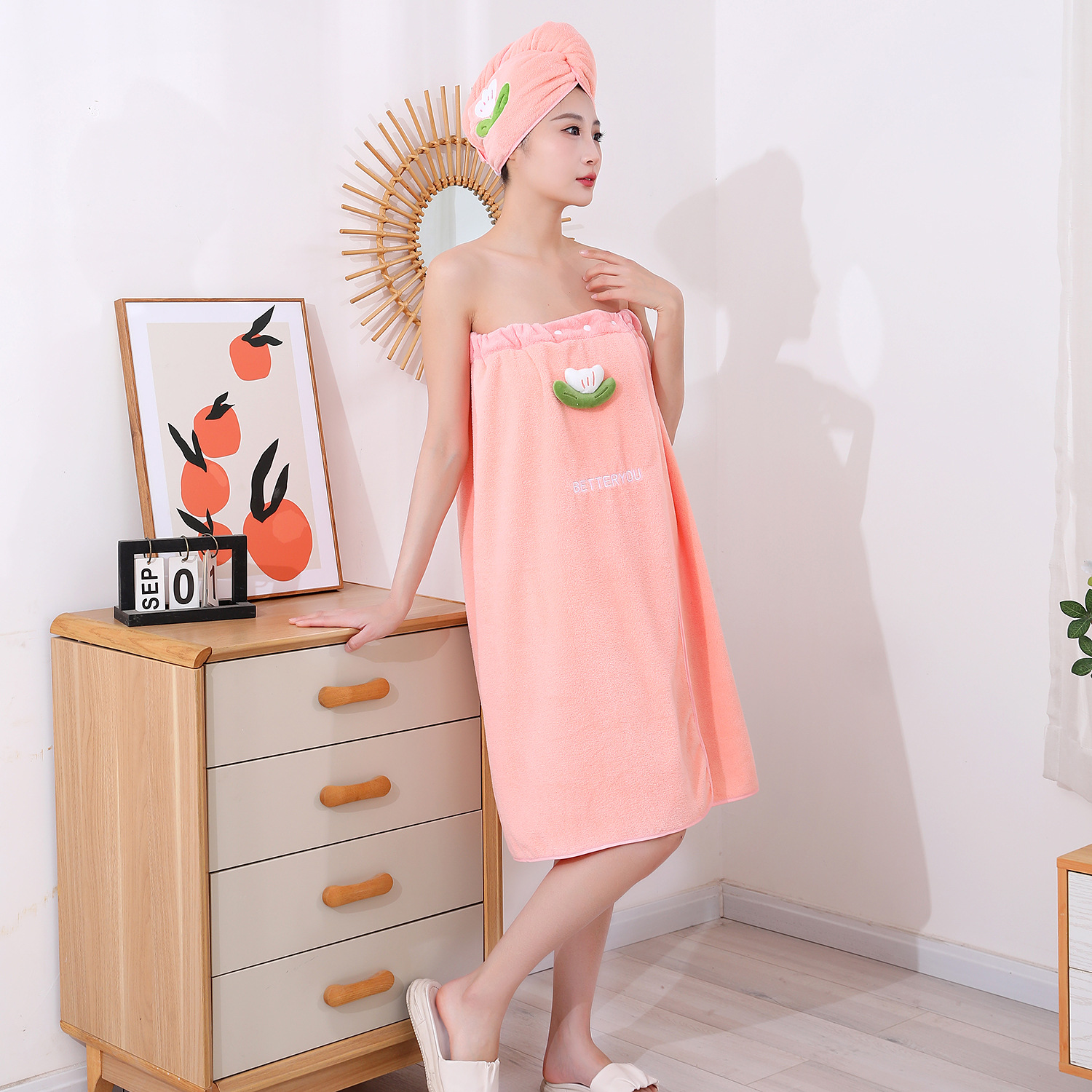 2024 новые коралловые бархатные дамы могут носить банное полотенце милые впитывающие мягкие обернутые полотенца домашние юбки для ванной