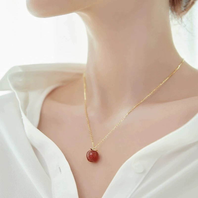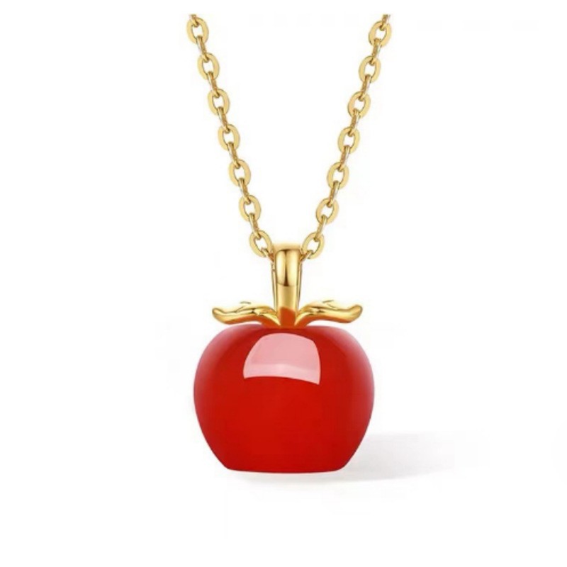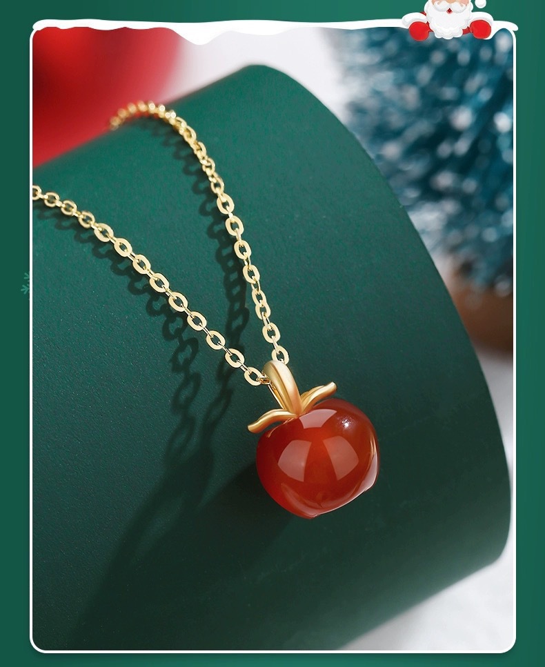Лист золота 18 карат Au750, инкрустированный красным агатом, подвеска в форме яблока для подарка матери на Сочельник, оптовая продажа золота от Shuibe.
