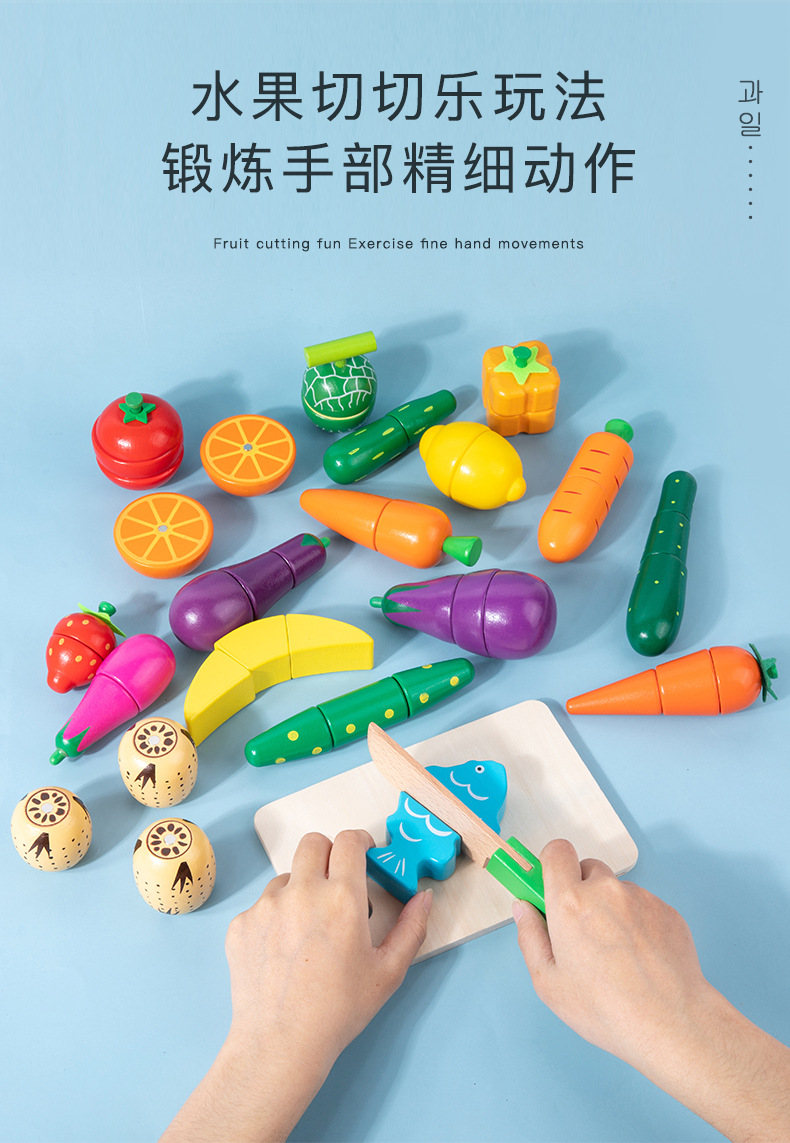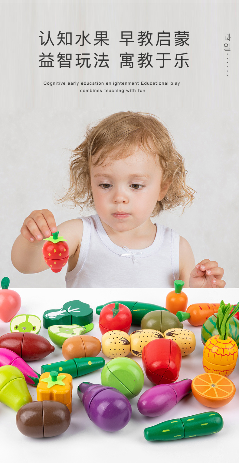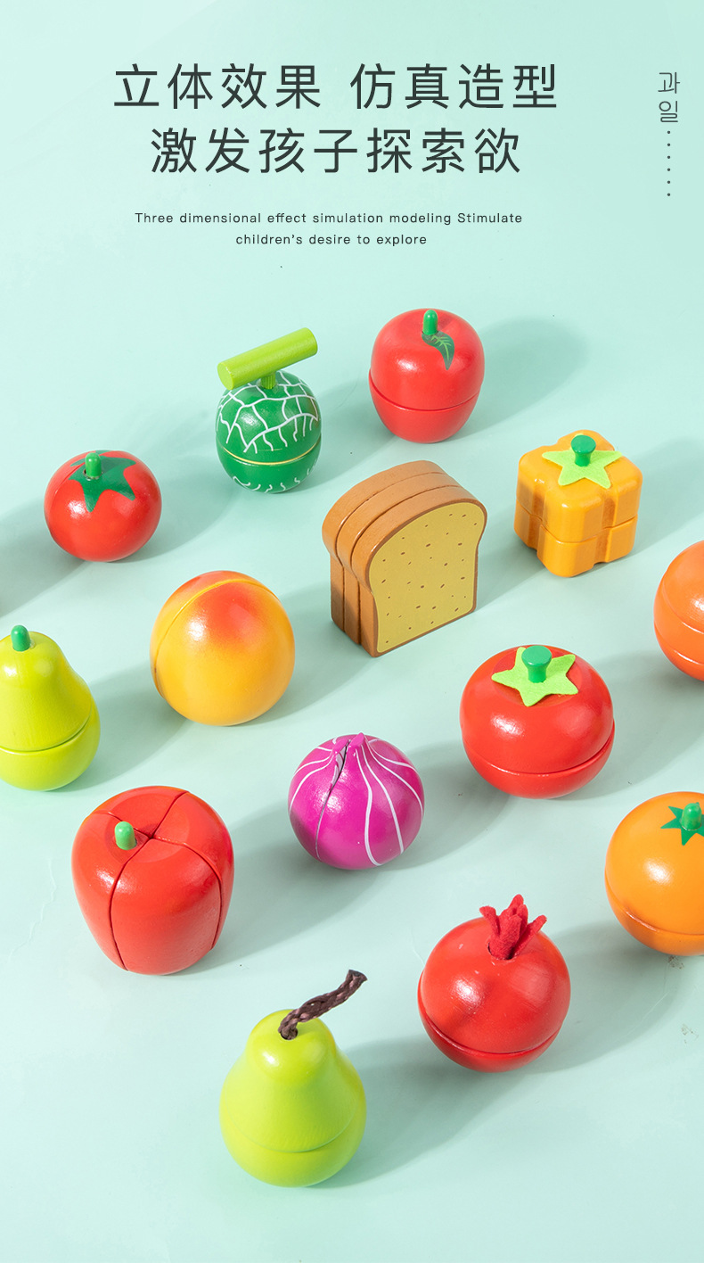 Qieqile трансграничная имитация деревянных овощей и фруктов DIY дополнительная комбинация для детей 1-3 лет деревянные детские игрушки
