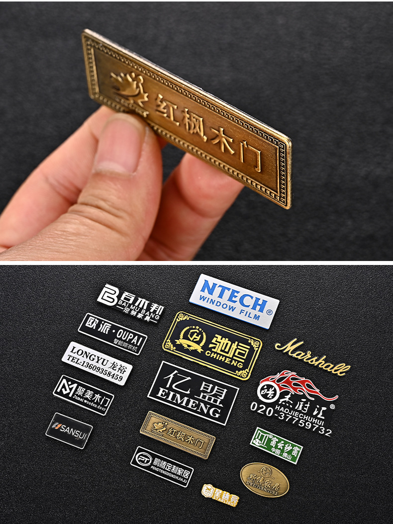 Металлический знак, индивидуальный логотип, штамповка для ванной комнаты, подарочная коробка для багажа, механическая дверная индустрия из алюминиевого сплава, металлическая табличка с именем торговой марки