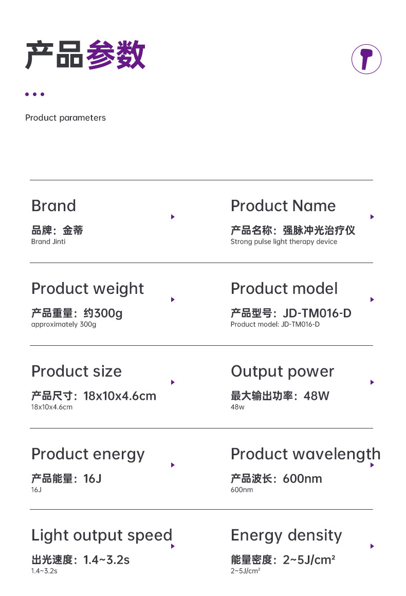 Белый (один лед); Фиолетовый (один лед); Розовый (один лед); Черный (один лед); Белый двойной лед (две запасные головы); Фиолетовый двойной лед (две запасные головы); Розовый двойной (две заменяющие головы); Черный двойной лед (две заменяющие головы)