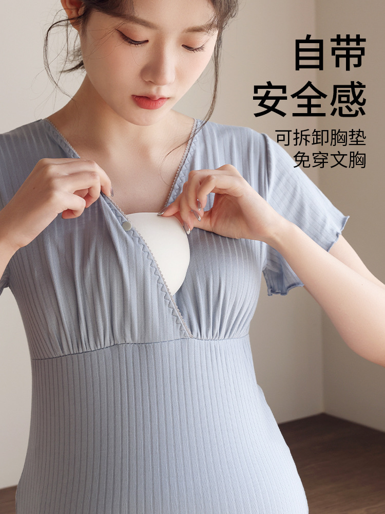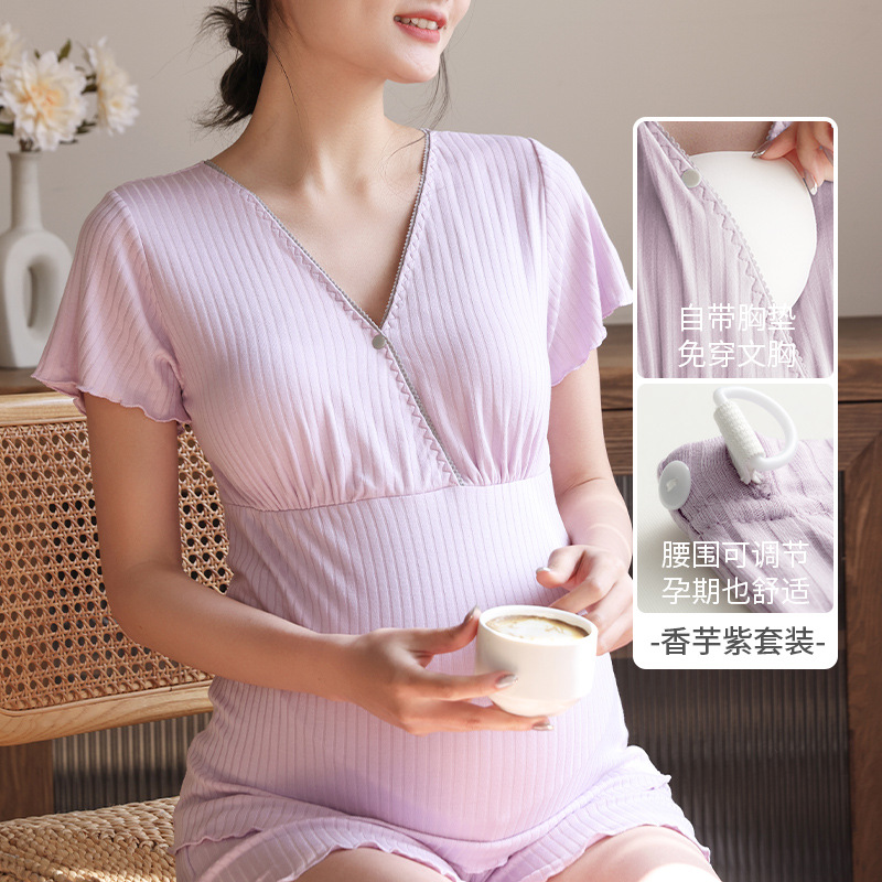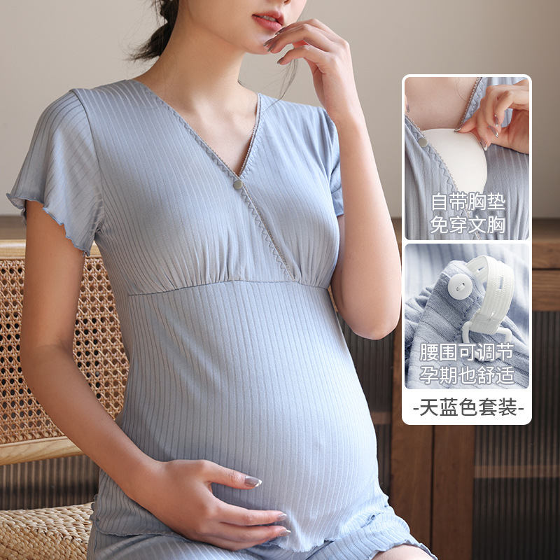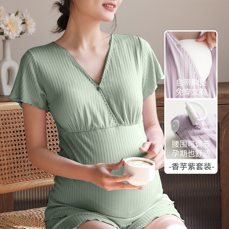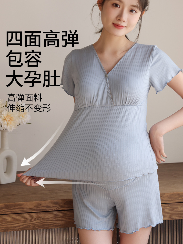 Кормящая пижама с короткими рукавами, набор из двух частей, летняя тонкая беременная женщина во время беременности, послеродовое кормление топы, домашняя одежда