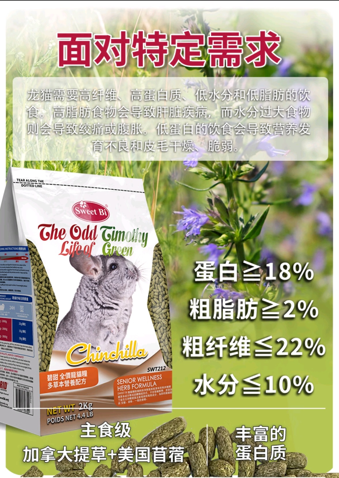 Bitianduo травяная ягодная питательная еда для шиншиллы, 2 кг, основное кормовое предварительное питание, пребиотик, семена конопли тимосии
