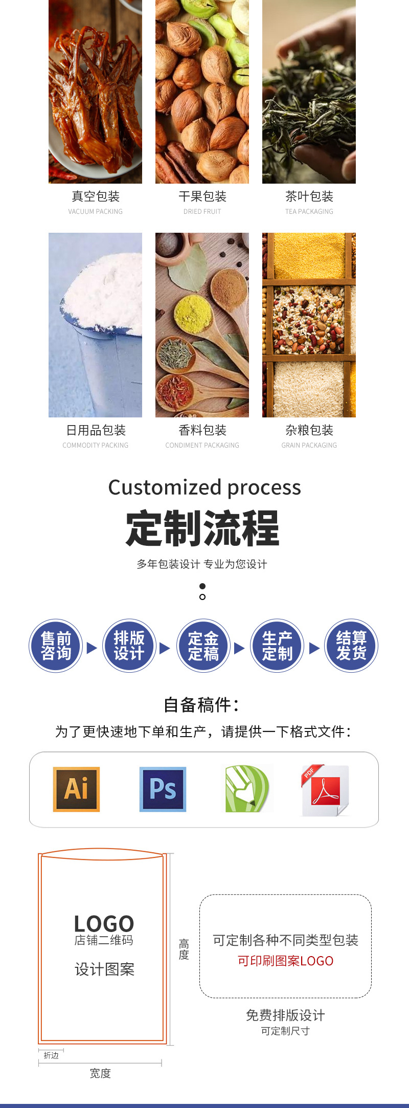 Индивидуальные пакеты для упаковки пищевых продуктов; Индивидуальные пакеты для корма для домашних животных; Изготовление сумок специальной формы по индивидуальному заказу; Персонализация чайных пакетиков; Точечный мешок из крафт-бумаги; Спот белый пакет из крафт-бумаги