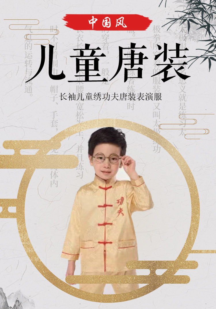 Оптовая продажа малых и средних детей вышивка кунг-фу Тан костюм весной и осенью мальчик с длинными рукавами брюки