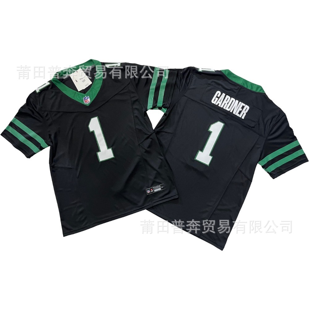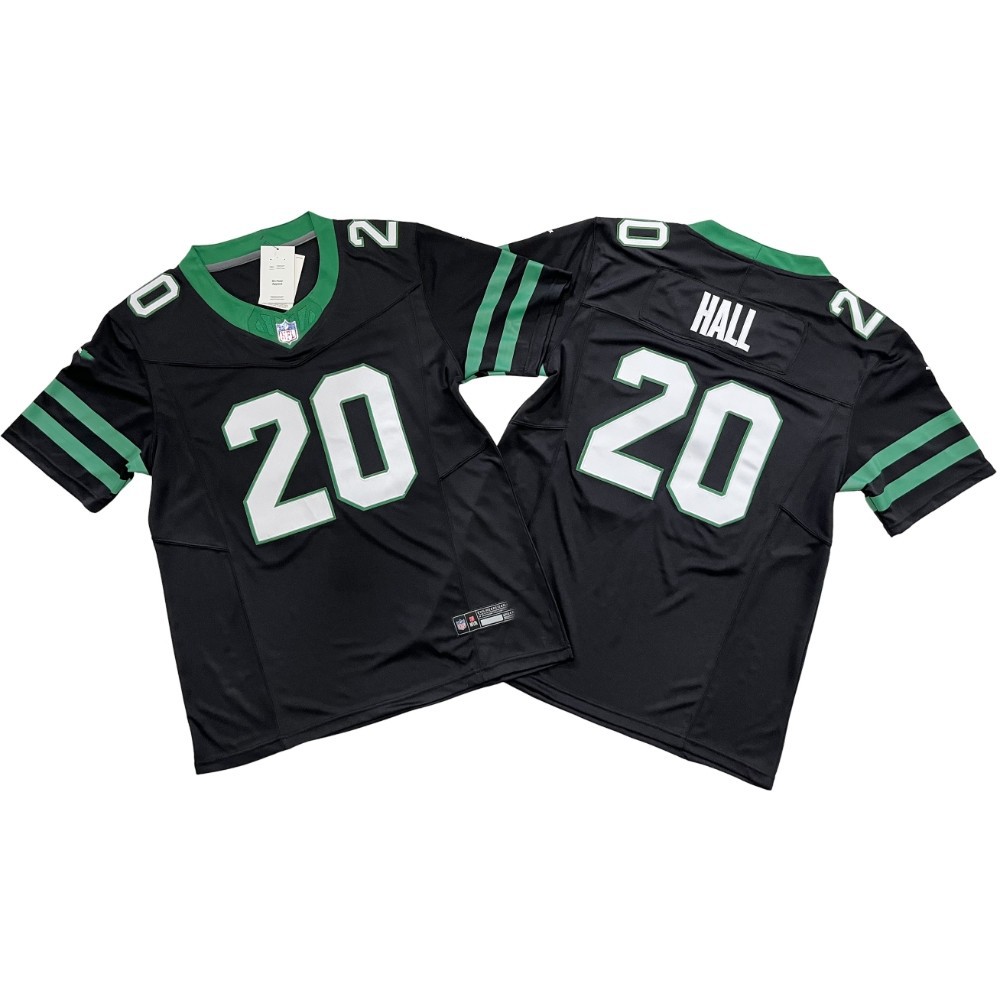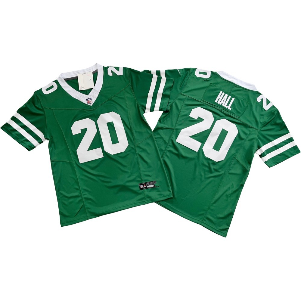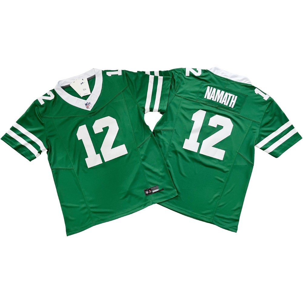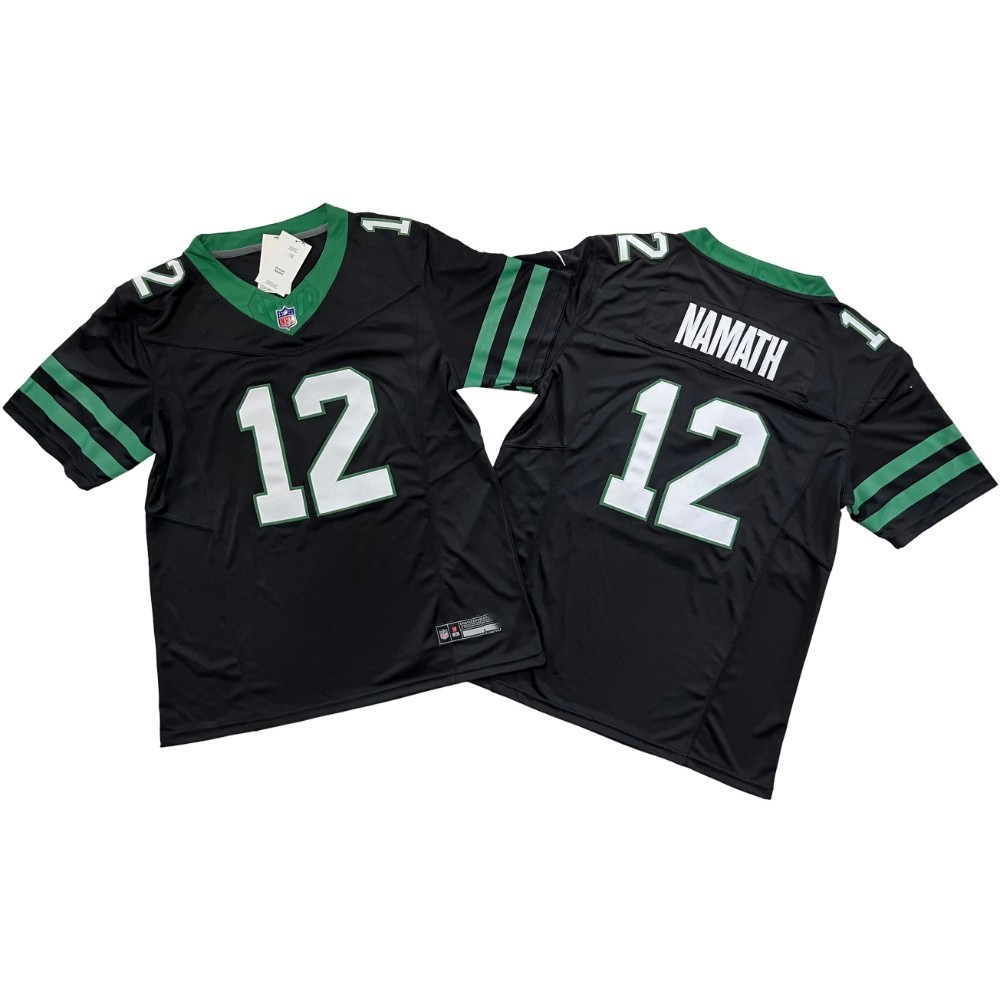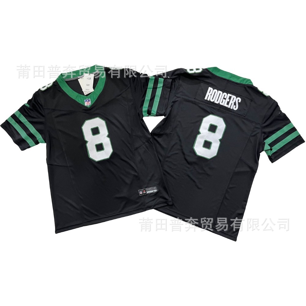 2024 Футбольные форсунки New York Jet Machine NFL # 1 # 8 # 20 # 12 # 5. Мужская черно-зеленая вышивка в стиле ретро.
