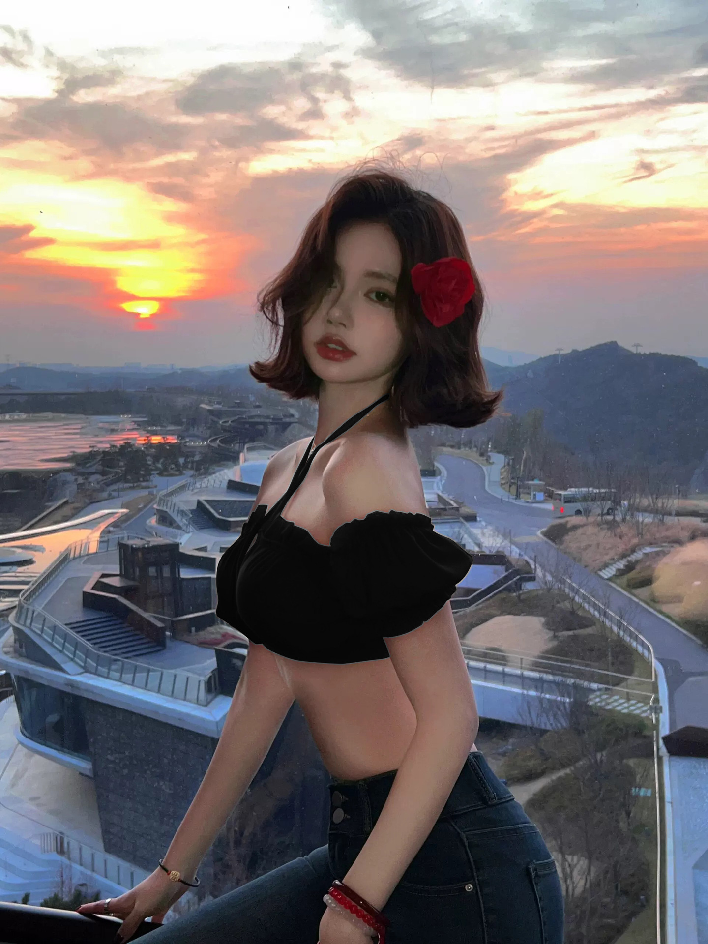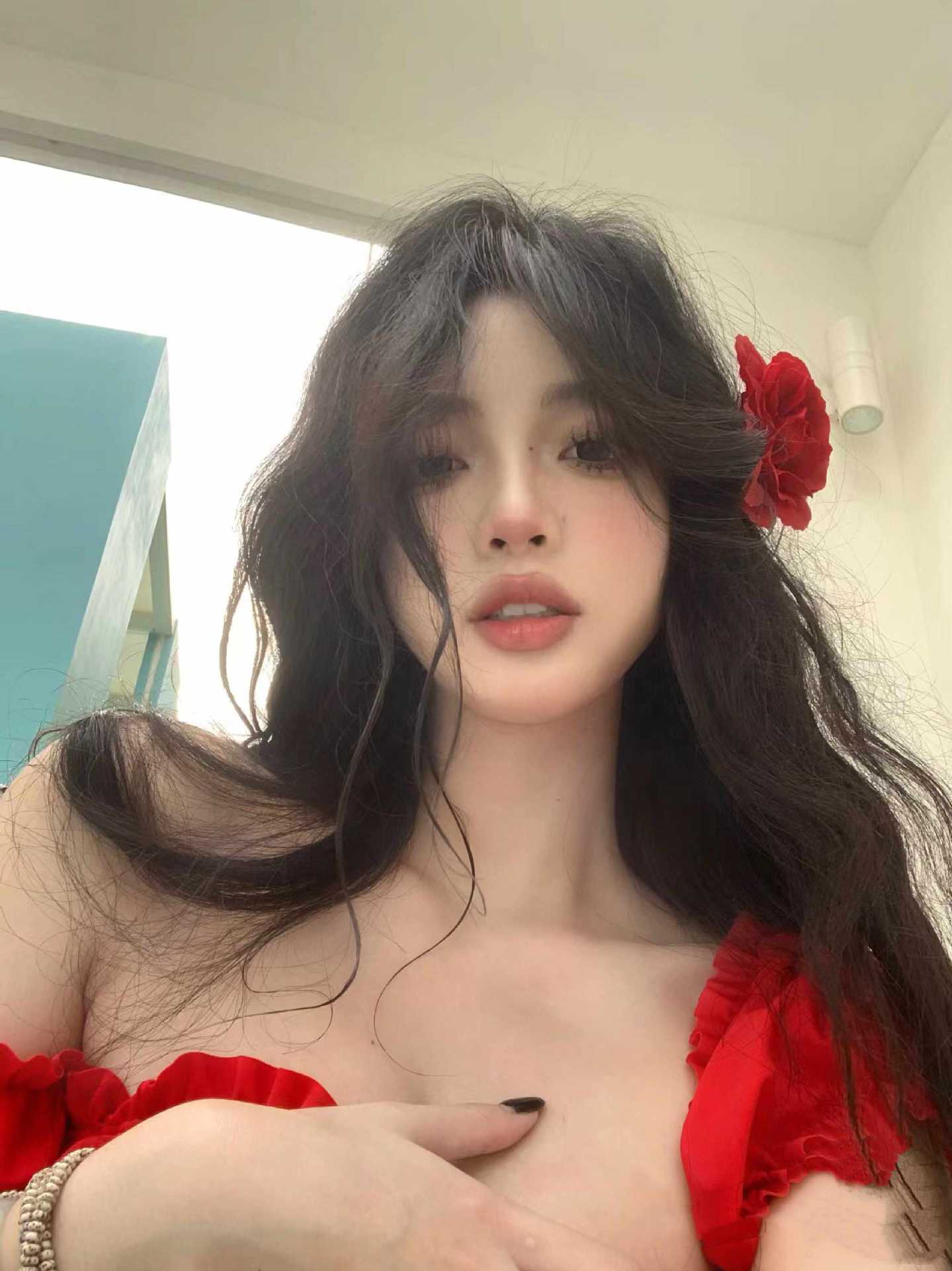 Независимый красный цветок на голове; Красный купальник + красный цветок на голову; Независимый красный купальник; Черный купальник + белый цветок на голову; Независимый черный купальник; Независимый цветок с белой головой