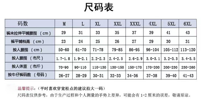L; XL; 2XL; 3XL; 4XL; 5XL; 6XL