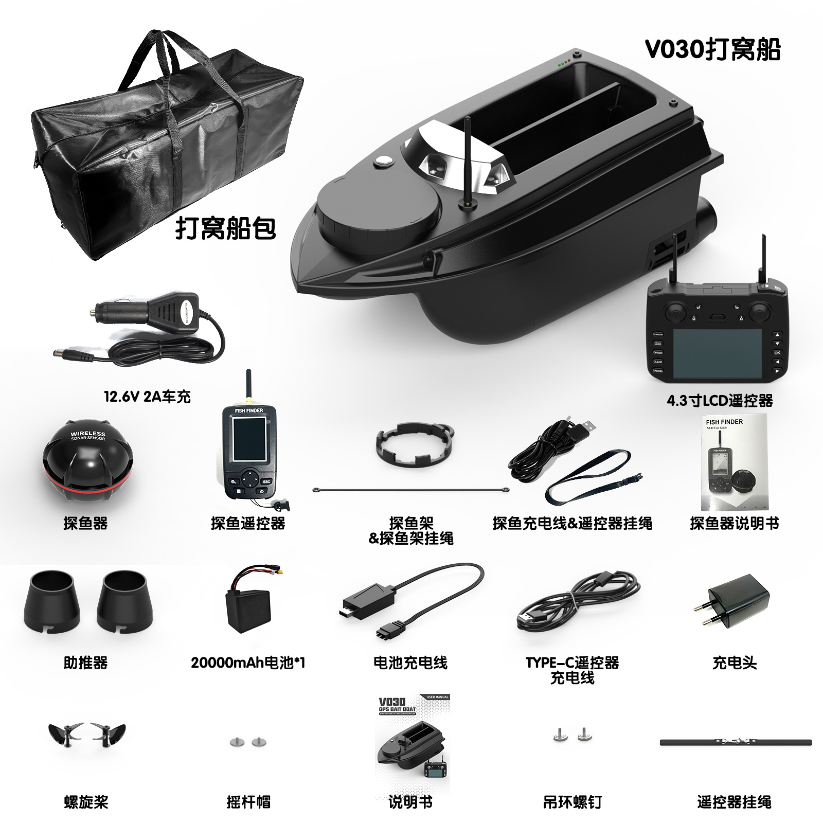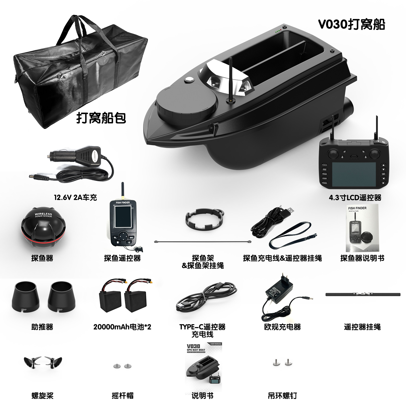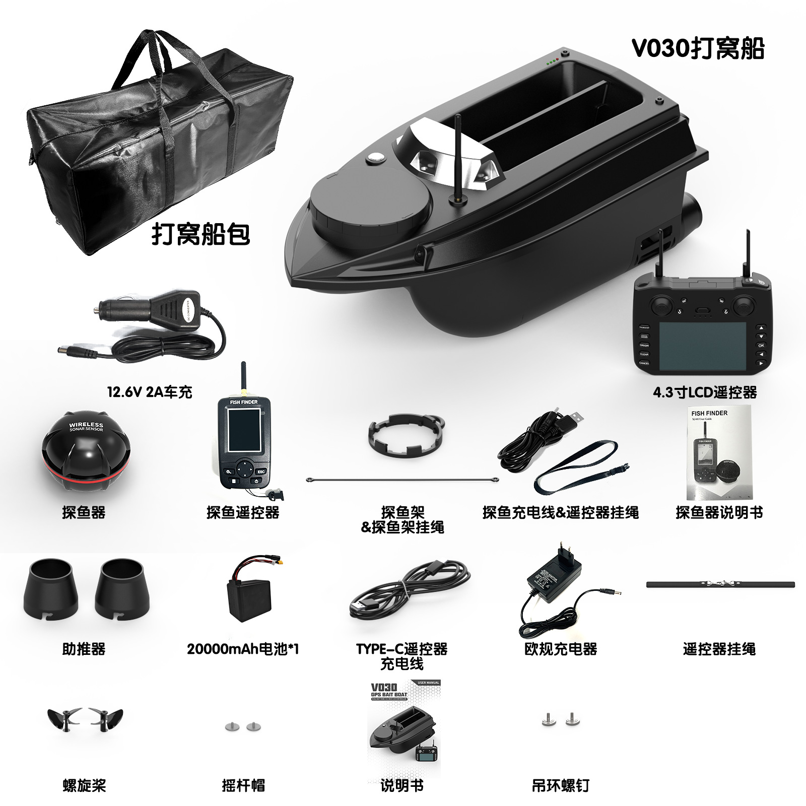 V030 Версия с GPS-навигацией (с европейским зарядным устройством); V030 Версия с GPS-навигацией (с европейским зарядным устройством), двойной аккумулятор; V030 Версия с GPS-навигацией + комплект эхолота (с европейским зарядным устройством); V030 Версия GPS-навигации + комплект эхолота (с европейским зарядным устройством), двойной аккумулятор; V030 Версия с GPS-навигацией (с европейским зарядным устройством) + автомобильное зарядное устройство; V030 Версия с GPS-навигацией (с европейским зарядным устройством), двойной аккумулятор + автомобильное зарядное устройство; V030 Версия GPS-навигации + комплект эхолота (с европейским зарядным устройством) + автомобильное зарядное устройство; V030 Версия GPS-навигации + комплект эхолота (с европейским зарядным устройством), двойной аккумулятор + автомобильное зарядное устройство; V030 Версия с GPS-навигацией (с зарядным устройством USB-кабеля); V030 Версия с GPS-навигацией (с зарядным устройством USB-кабеля), двойной аккумулятор; V030 Версия с GPS-навигацией + комплект эхолота (с зарядным устройством через USB-кабель); V030 Версия с GPS-навигацией + комплект эхолота (с зарядным устройством USB-кабеля), двойной аккумулятор; V030 Версия с GPS-навигацией (с зарядным устройством через USB-кабель) + автомобильное зарядное устройство; V030 Версия с GPS-навигацией (с зарядным устройством USB-кабеля), двойной аккумулятор + автомобильное зарядное устройство; V030 Версия GPS-навигации + комплект эхолота (с зарядным устройством USB-кабеля) + автомобильное зарядное устройство; V030 Версия GPS-навигации + комплект эхолота (с зарядным устройством USB-кабеля) двойной аккумулятор + автомобильное зарядное устройство; Голая лодка V030 (без антенны, пульта дистанционного управления, зарядного устройства и аккумулятора)