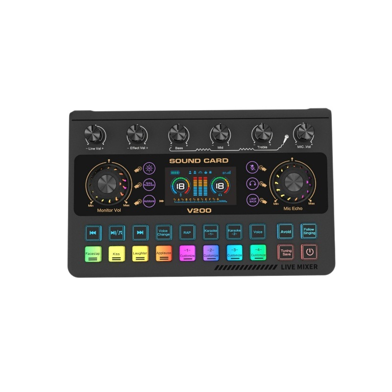 Звуковая карта v200 для трансграничных прямых трансляций, полный комплект, звуковая карта для TikTok, для пения, для прямых трансляций, английская мобильная звуковая карта, для электронной музыки