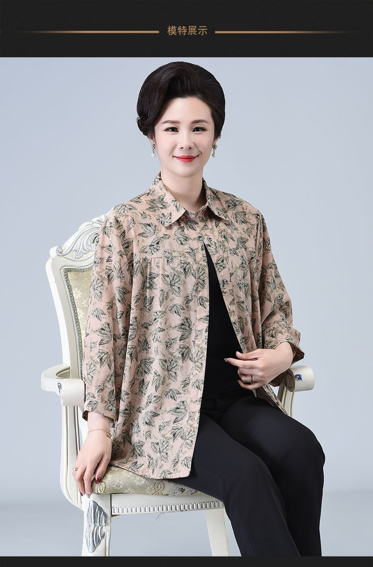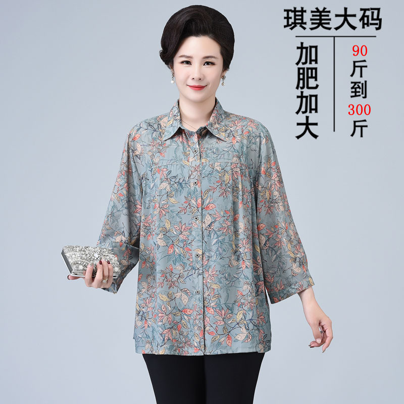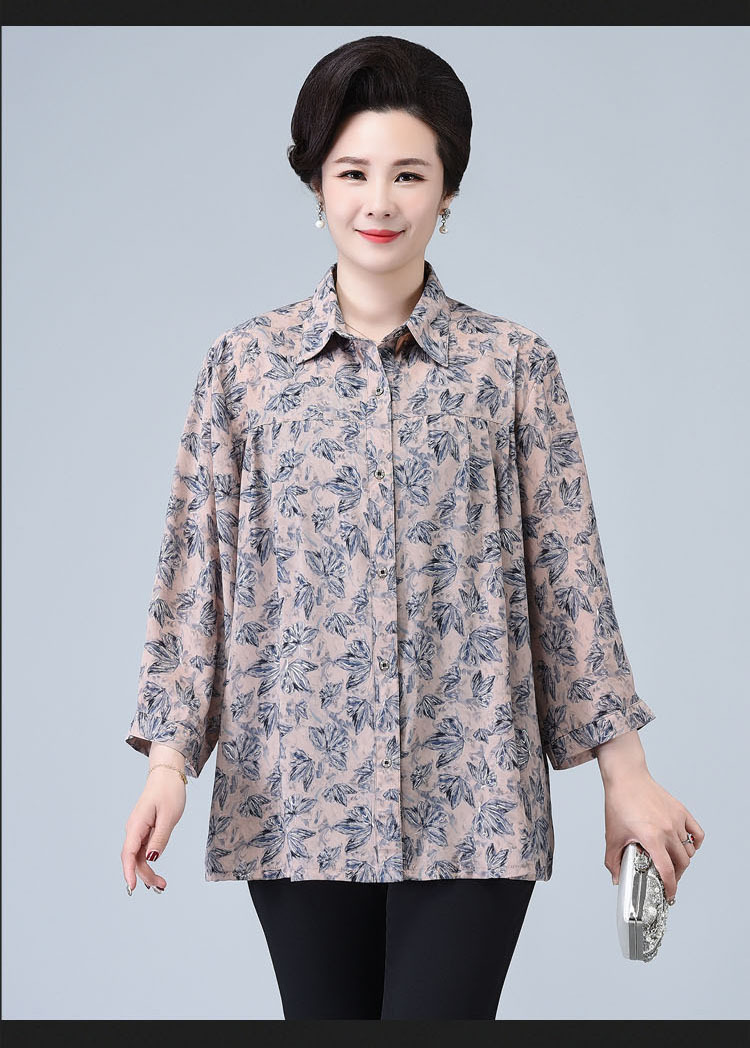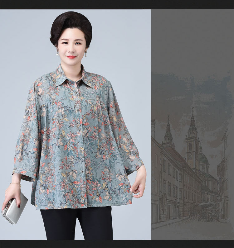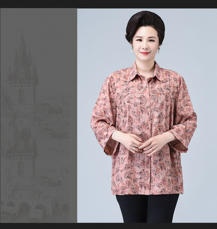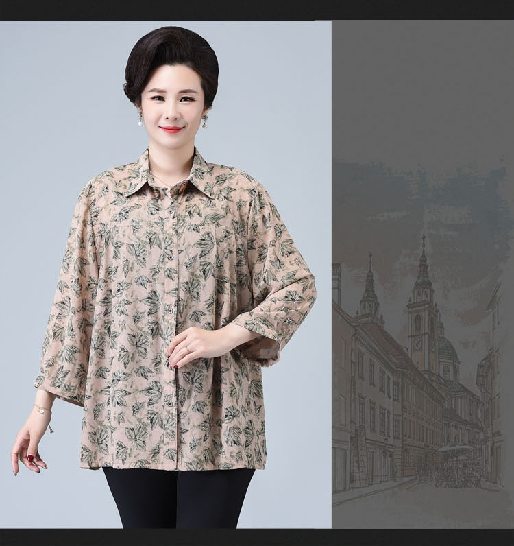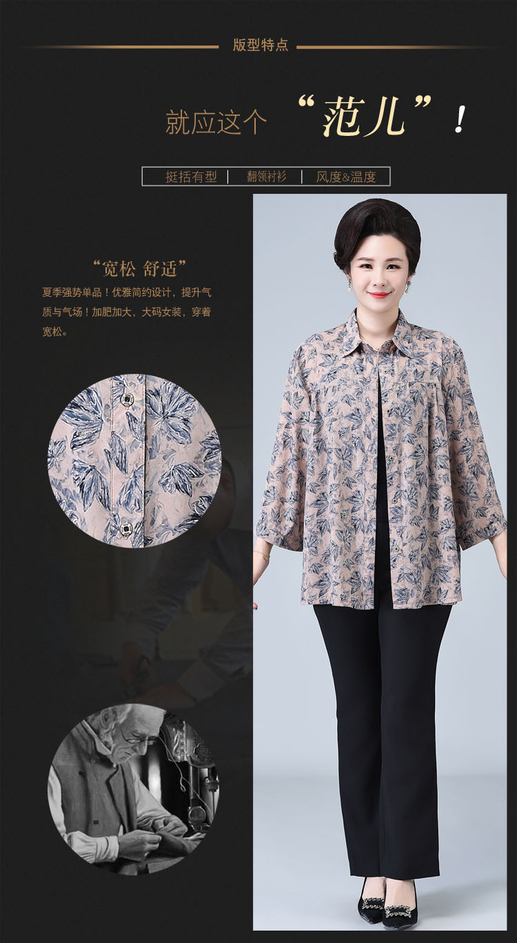 Пожилая женская восьмипота рукава одежда бабушка летняя рубашка 60 лет 70 мама топ восемь очков плюс размер мама рубашка