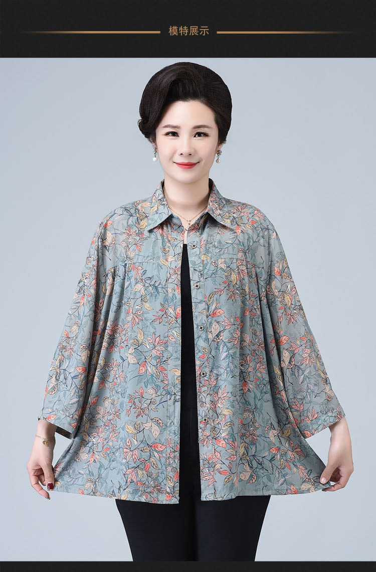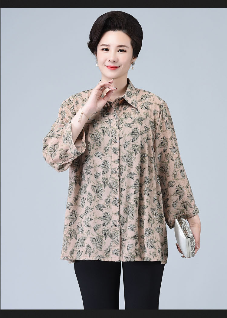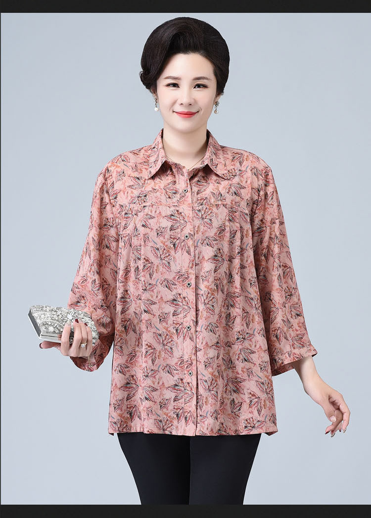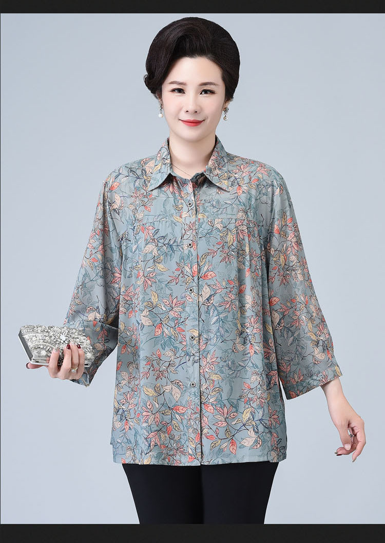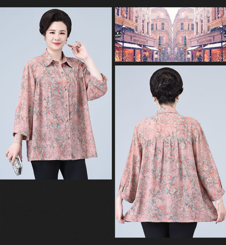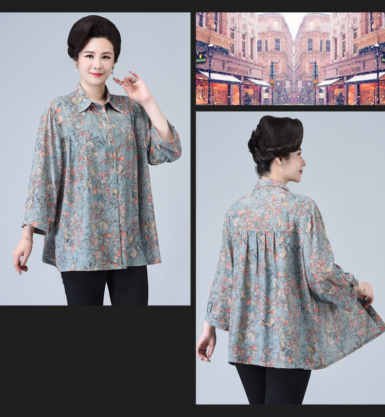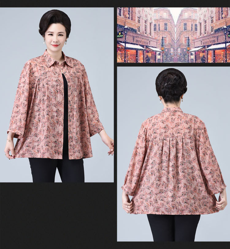 Пожилая женская восьмипота рукава одежда бабушка летняя рубашка 60 лет 70 мама топ восемь очков плюс размер мама рубашка