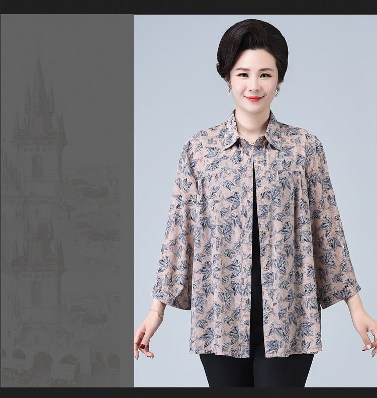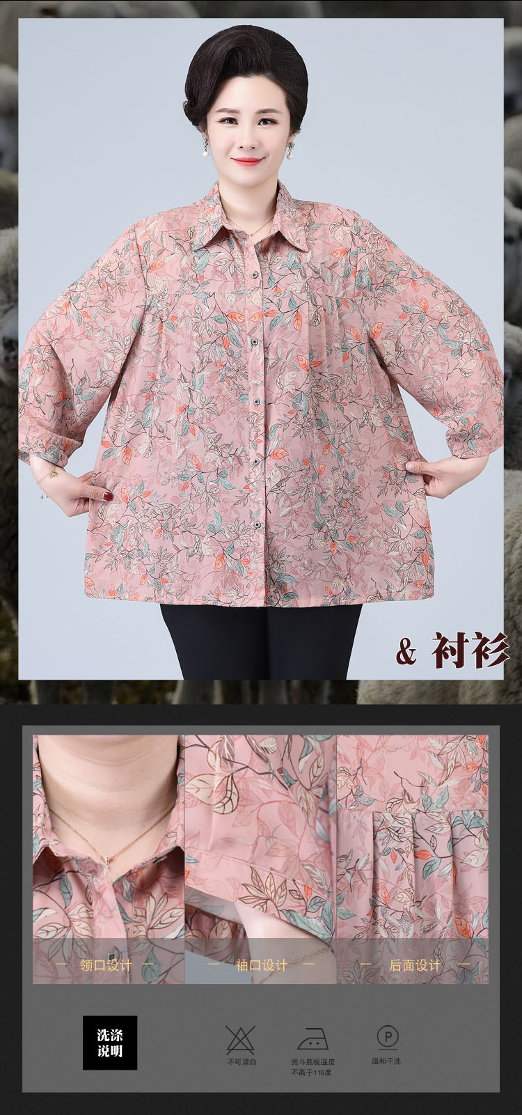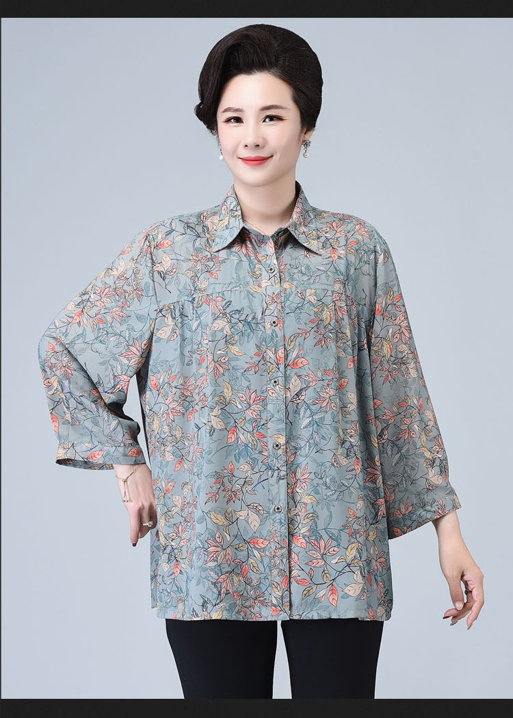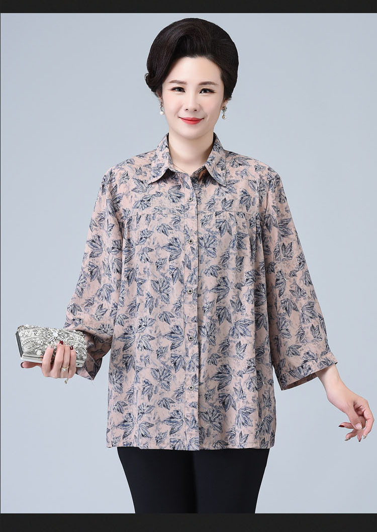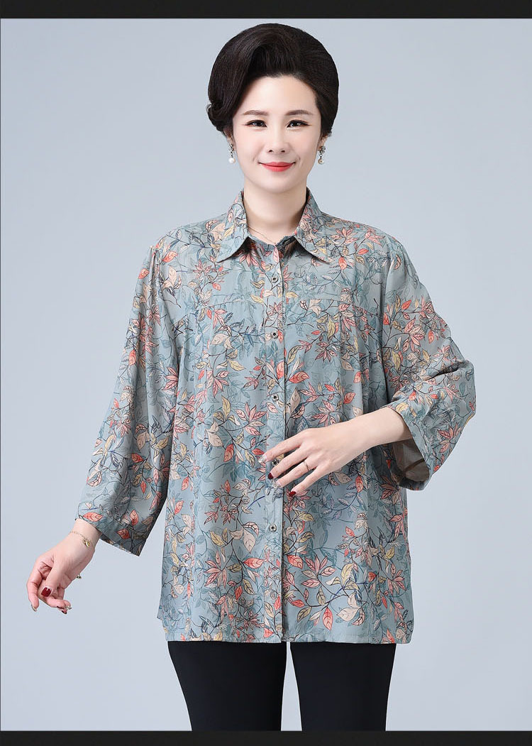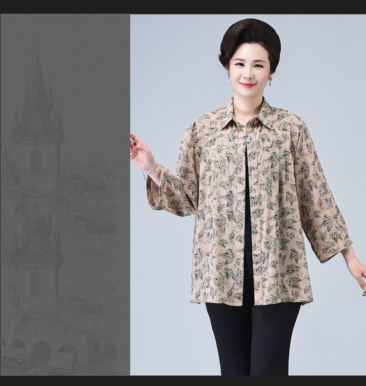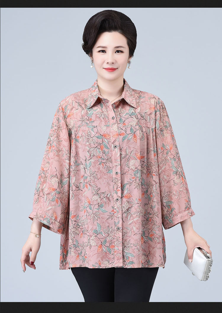 Пожилая женская восьмипота рукава одежда бабушка летняя рубашка 60 лет 70 мама топ восемь очков плюс размер мама рубашка