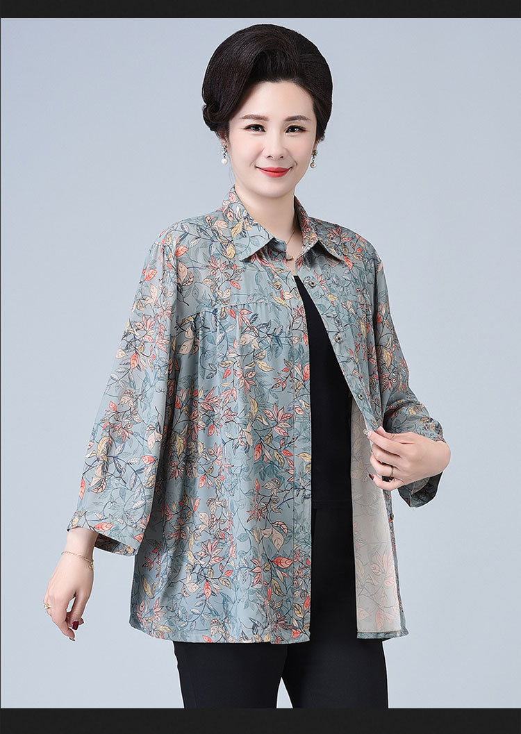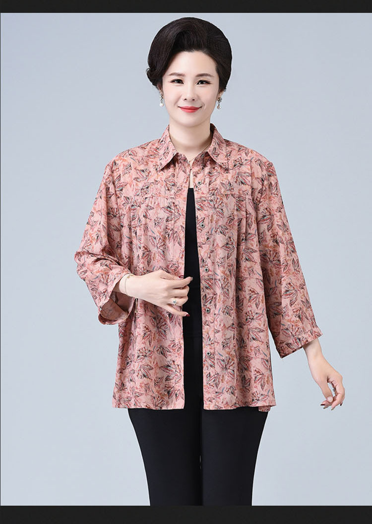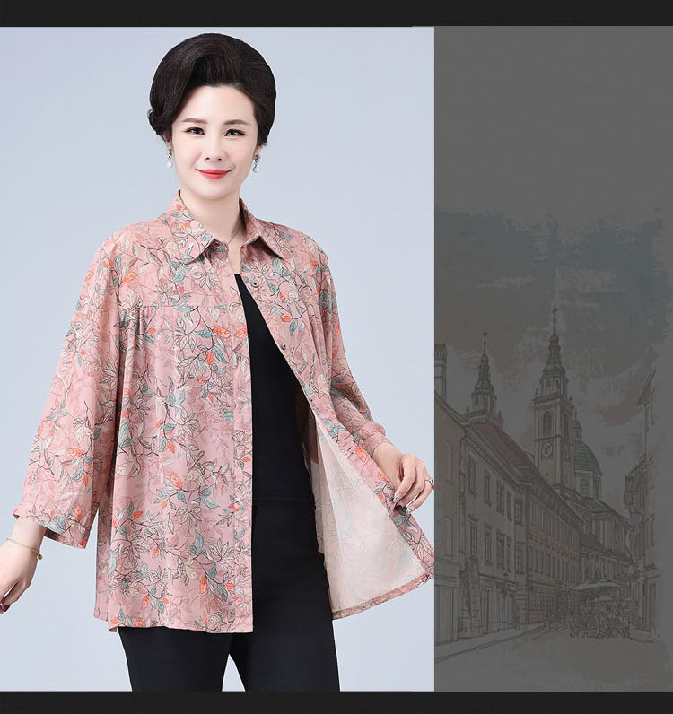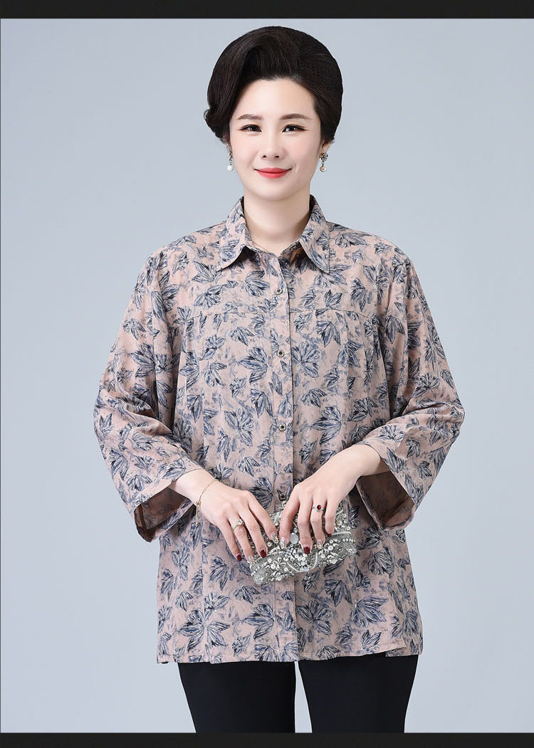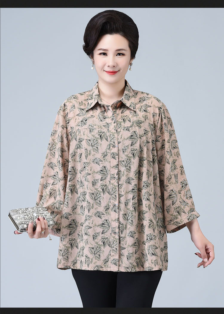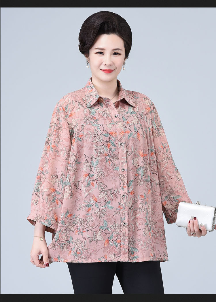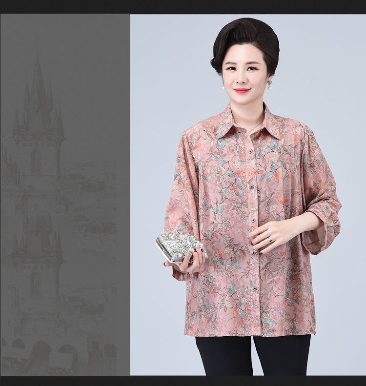 Пожилая женская восьмипота рукава одежда бабушка летняя рубашка 60 лет 70 мама топ восемь очков плюс размер мама рубашка