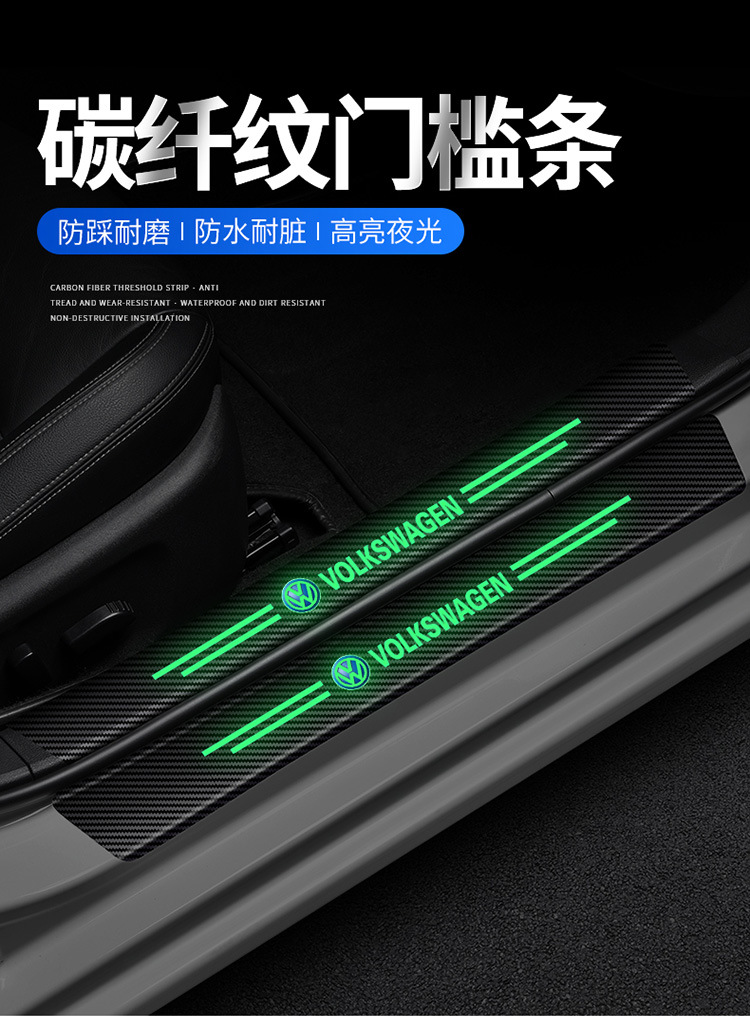 Автомобильные светящиеся пороговые полосы противоугомозащитные наклейки, защищенные от царапин, дверные педали, универсальные углеродные пайки для декоративных принадлежностей