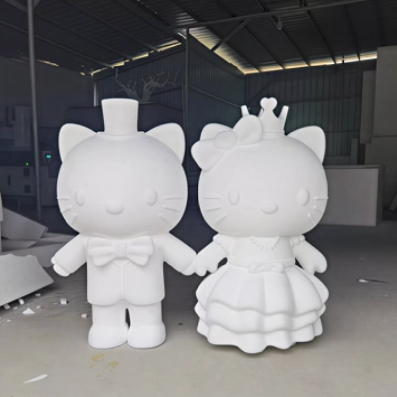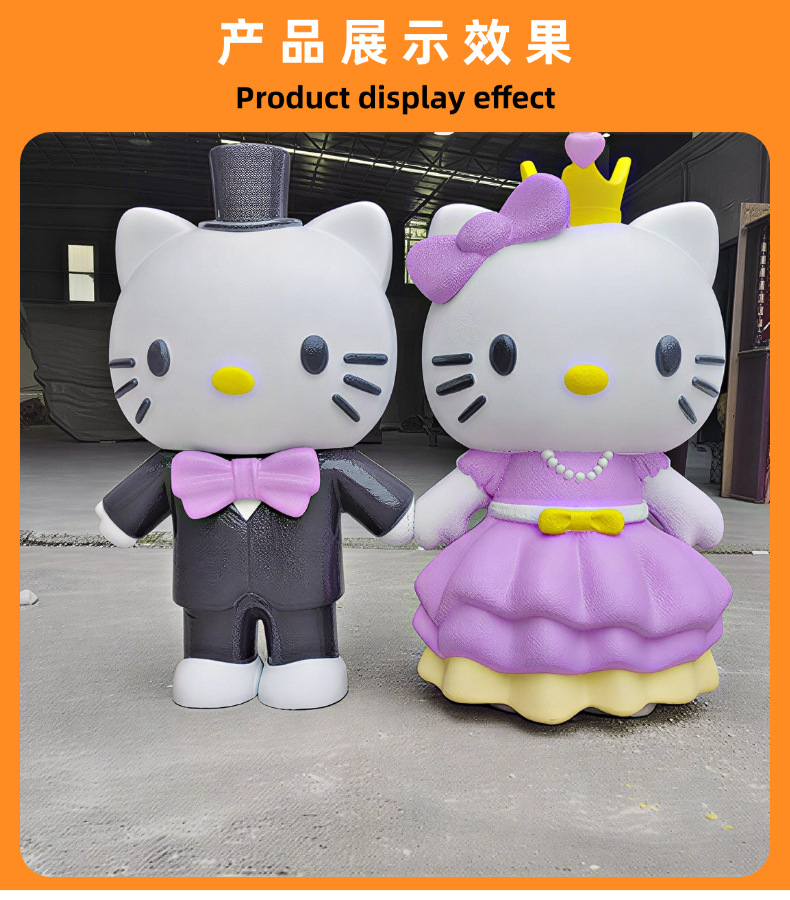 Популярные места для фото в соцсетях в парке развлечений, декорации из стекловолокна с IP-покрытием, красивые выставочные инсталляции, комбинированные скульптуры из стекловолокна в виде мультяшных кошек.