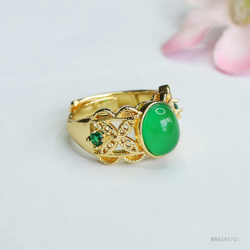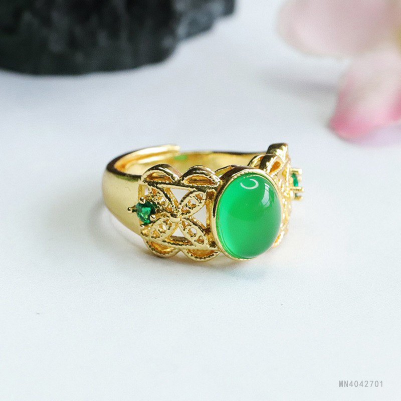 Yu Yu Bing посадка зеленый агат кольцо императорский зеленый халцедон хрустальное кольцо ювелирные изделия женская фабрика оптом MN4042701
