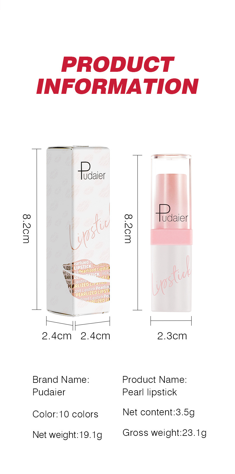 产品尺寸:2.3*8.2cm 包装尺寸:2.4*2.4*8.2cm