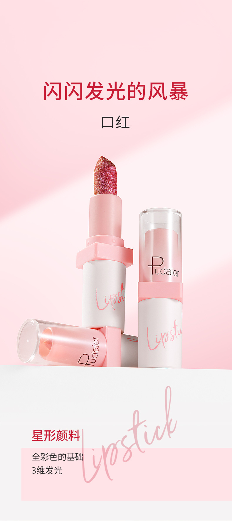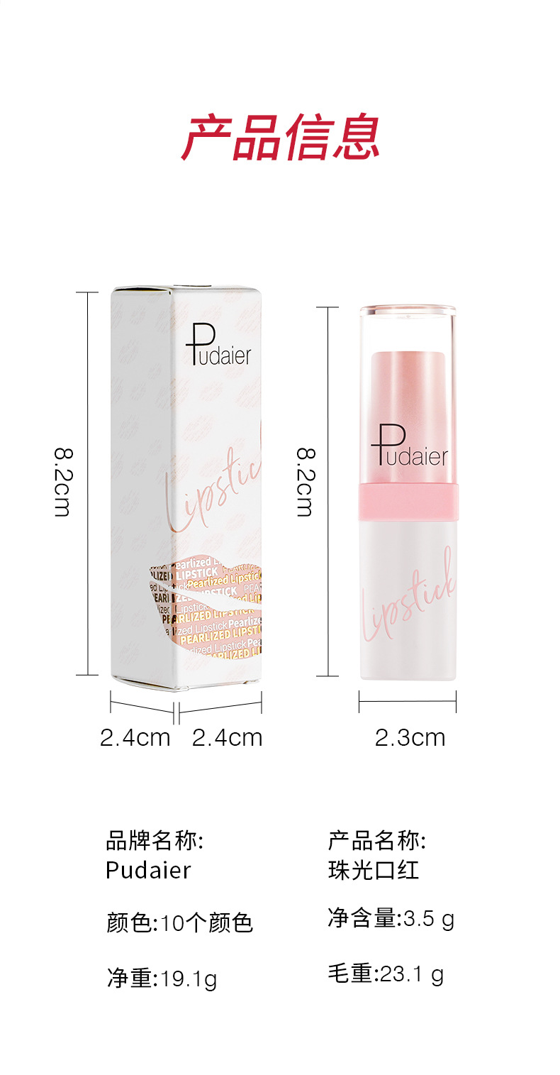 Трансграничный Pudaier блестящий металлический перламутровый бриллиантовый помада 10 цвет тумана не прилипает к чашке глазурь для губ европейский и американский блеск для губ