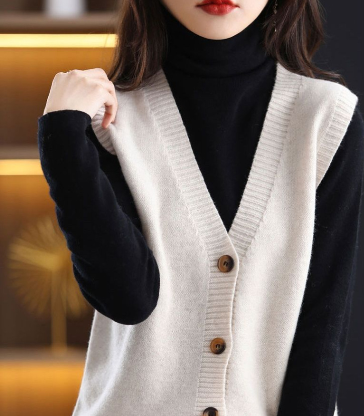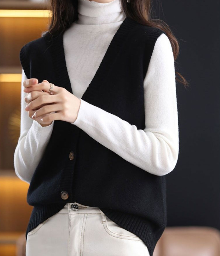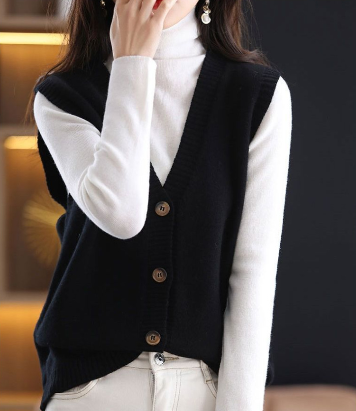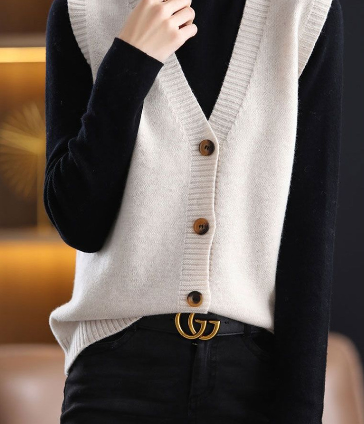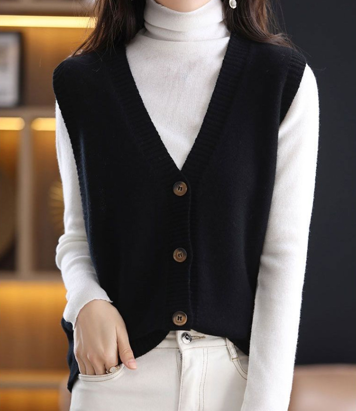 Весенний и осенний сплошной модный свитер жилет женский корейский простой темперамент носить дикий кардиган с V-образным вырезом без рукавов жилет женский