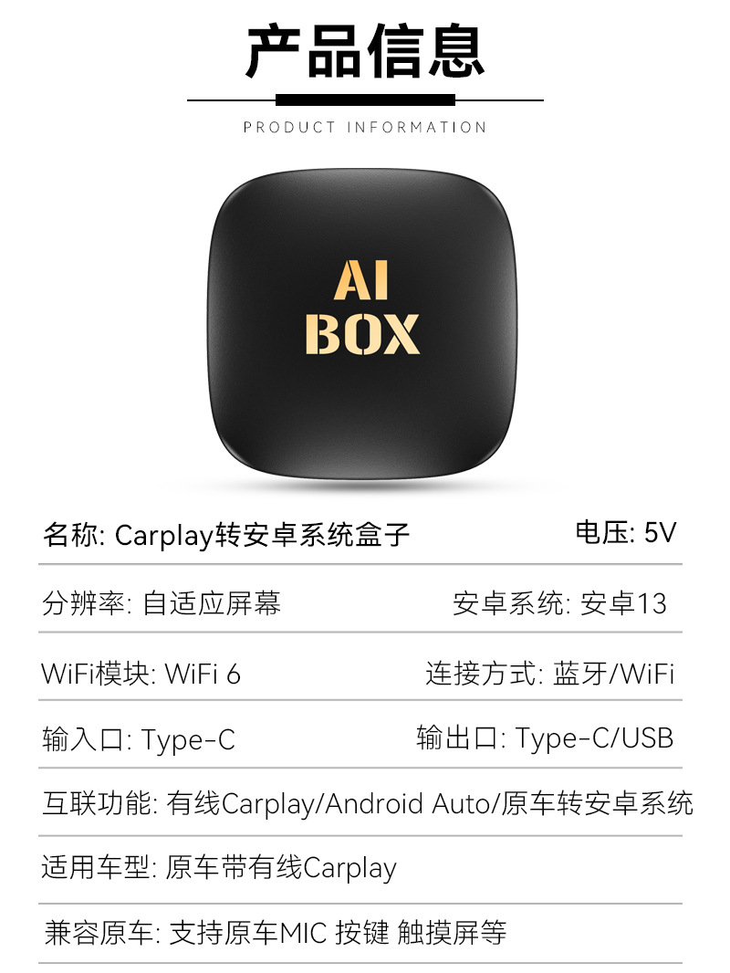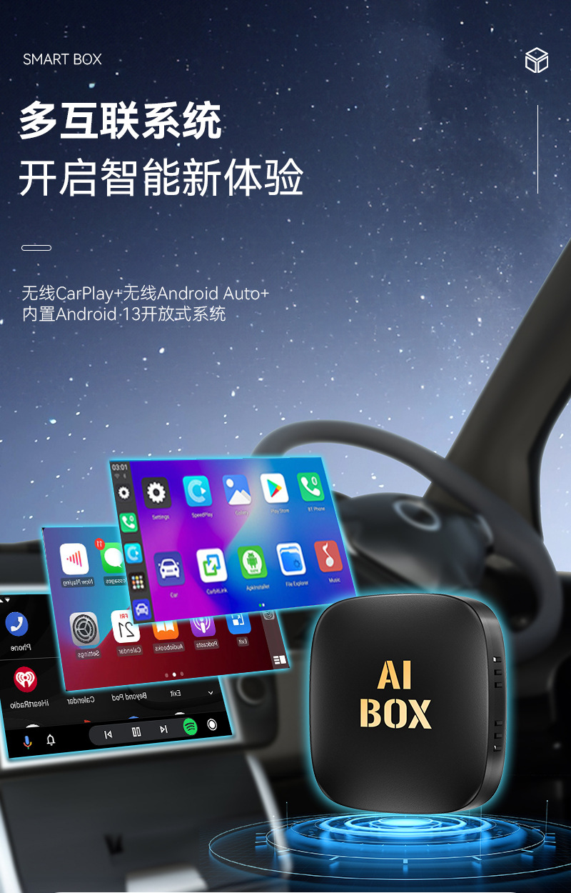 Модуль подключения автомобиля к устройствам Android 13, CarPlay и Android Auto 3-в-1, преобразующийся в Android-бокс AiboxCarPlay.