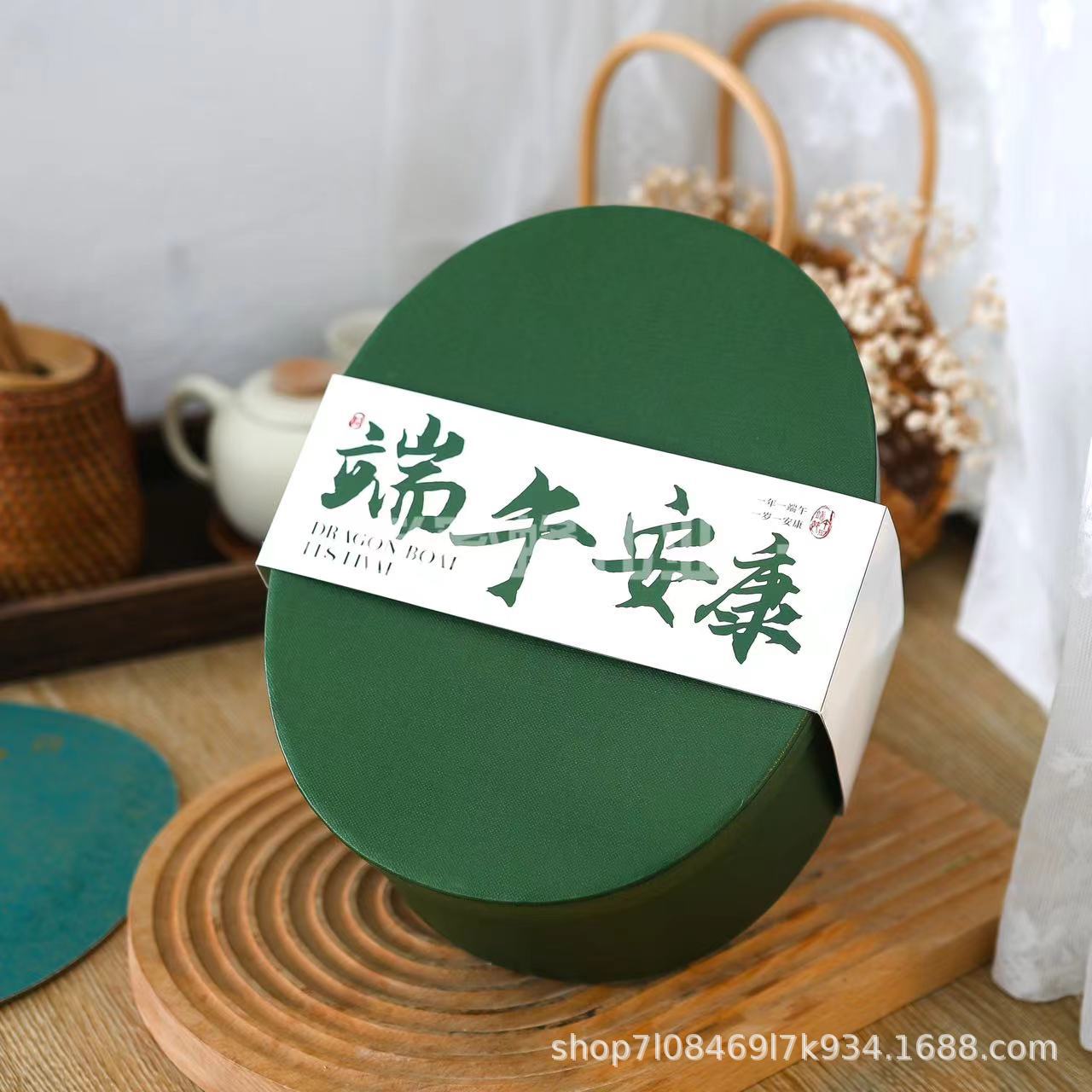 Подарочная коробка Zongzi, зеленая овальная подарочная коробка, подарочная коробка для фестиваля лодки-дракона, коробка из крафт-бумаги, упаковочная коробка Zongzi, пояс для фестиваля лодки-дракона