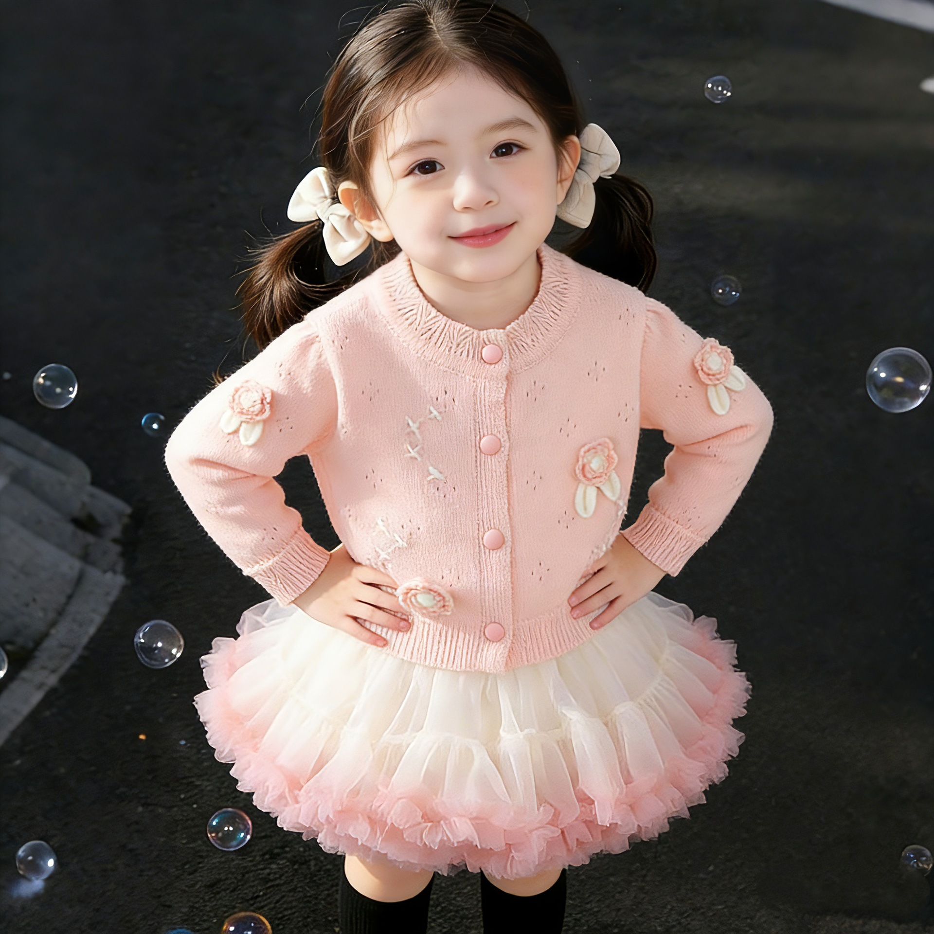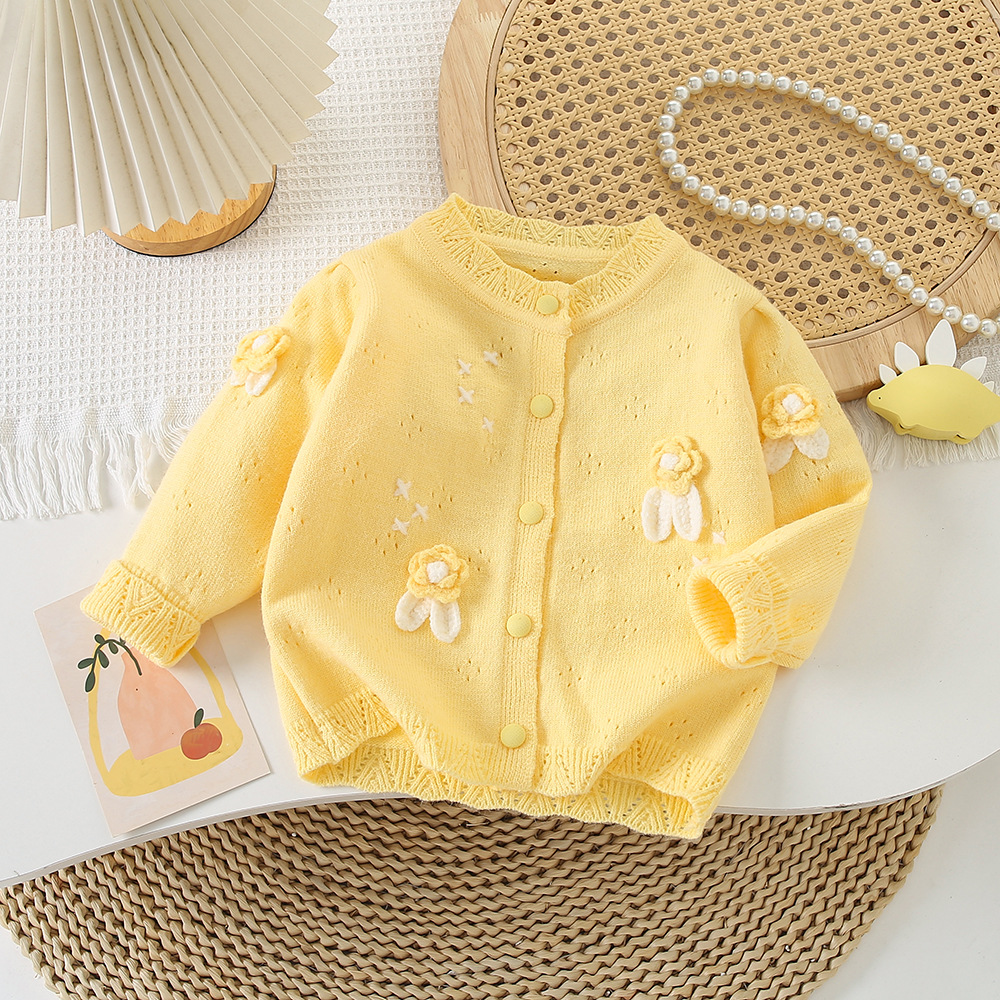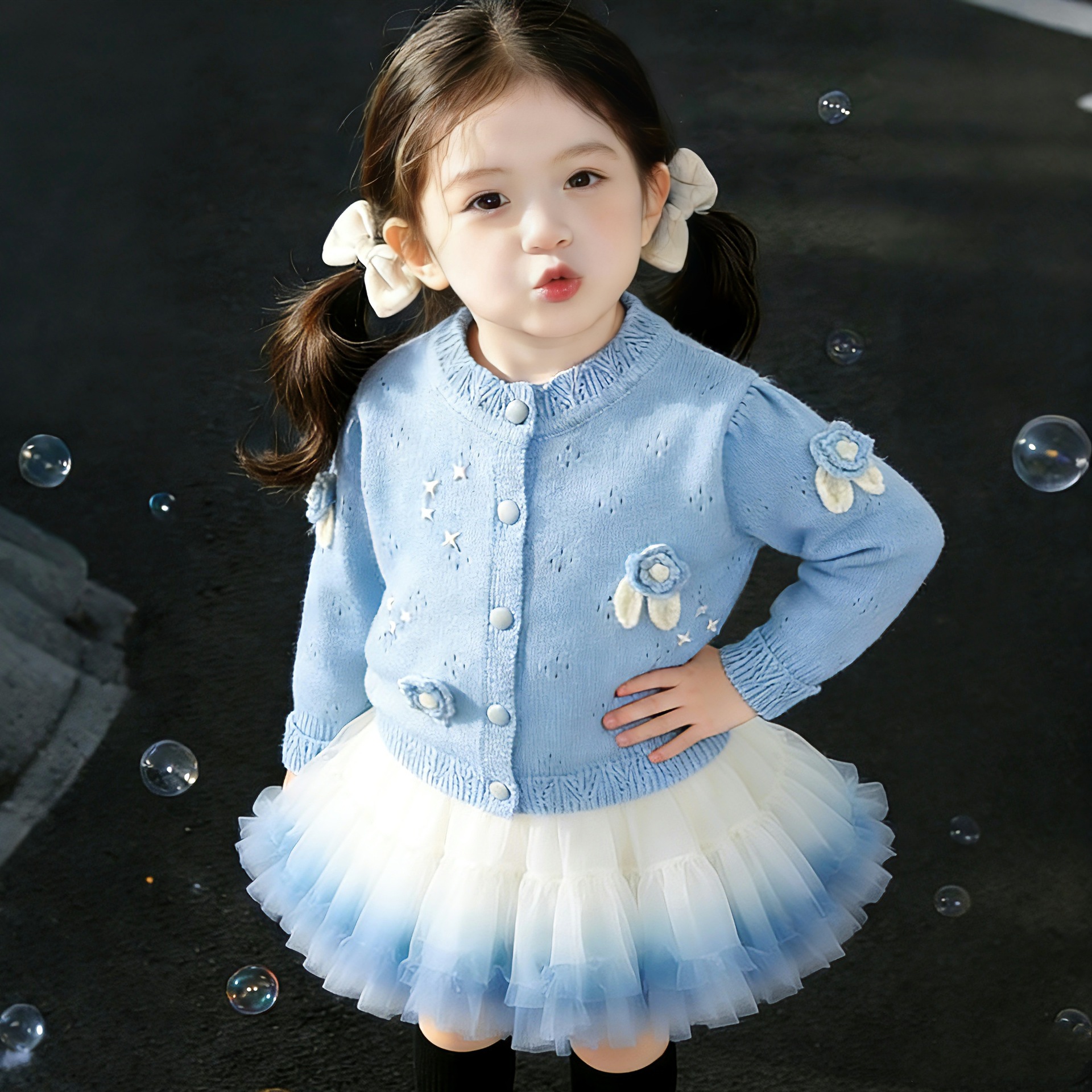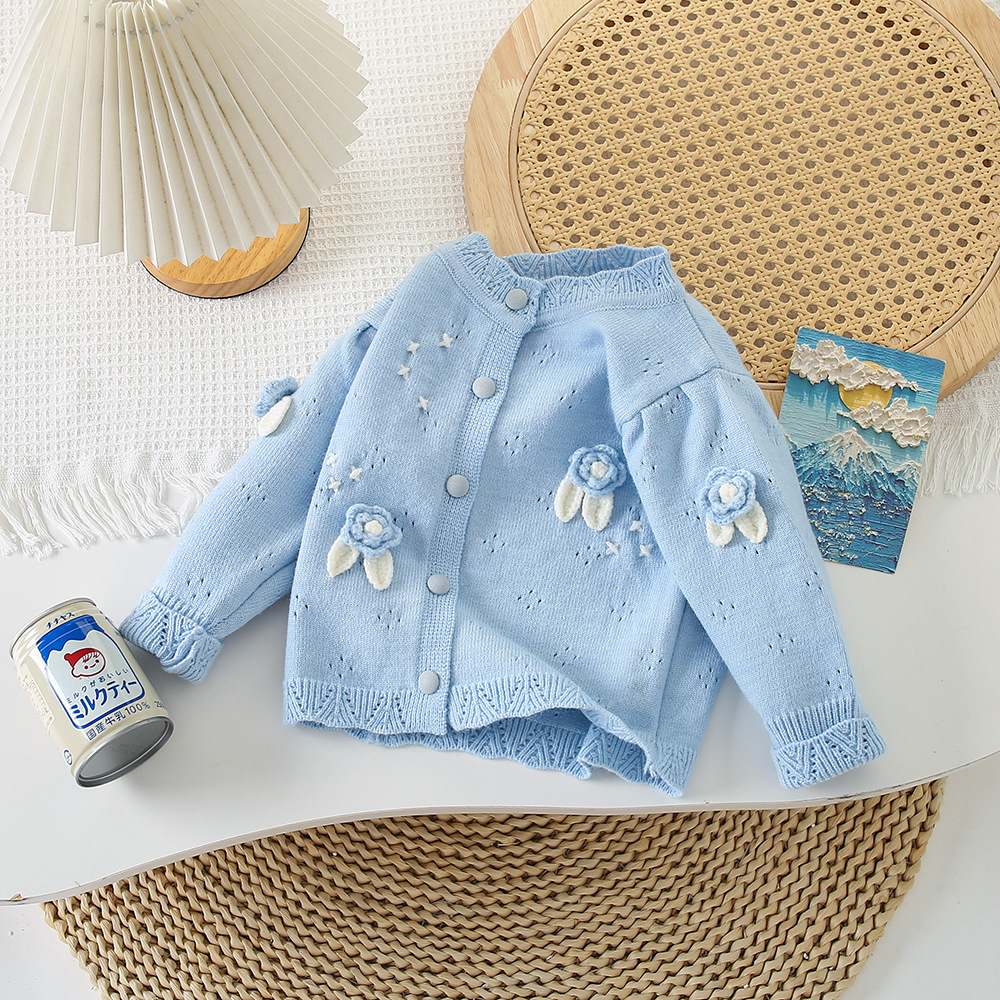 Корейская версия детской одежды 2024 весенняя новая модель девушки иностранный черный вязаный свитер детский свитер кардиган куртка