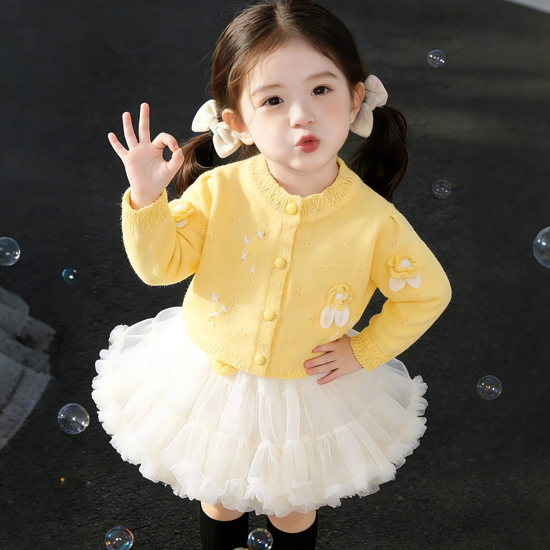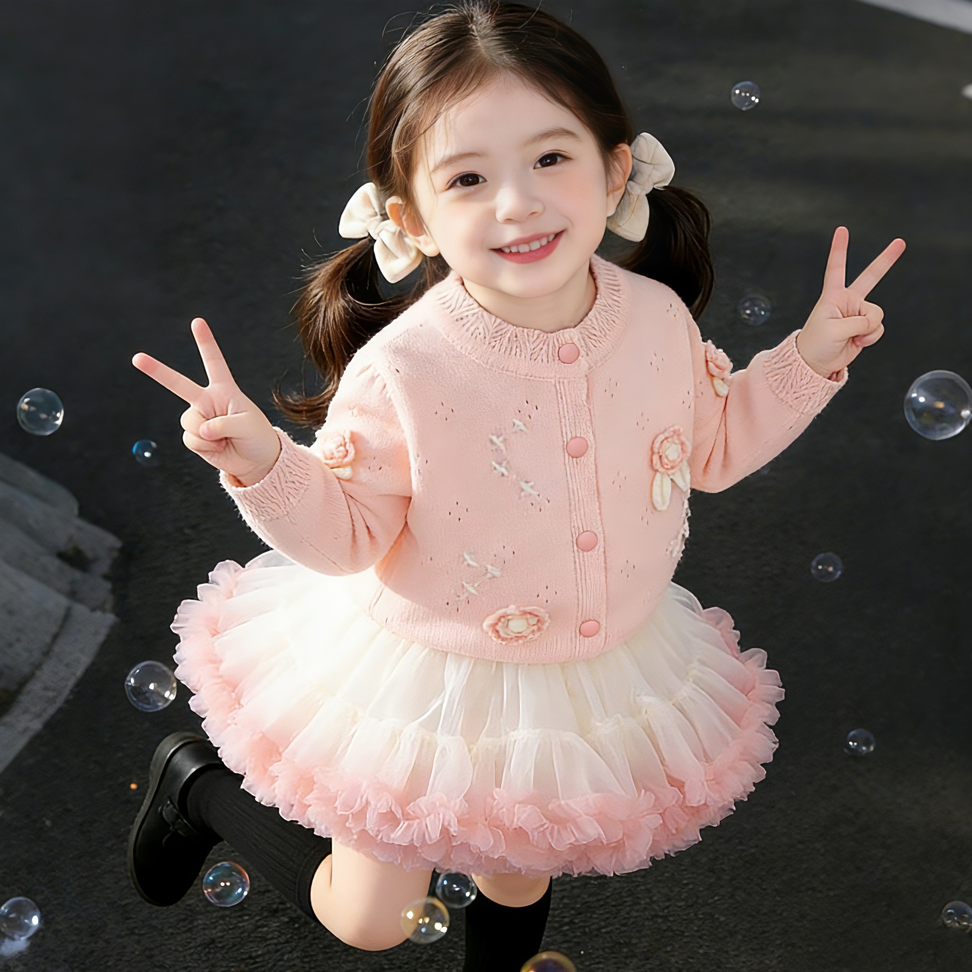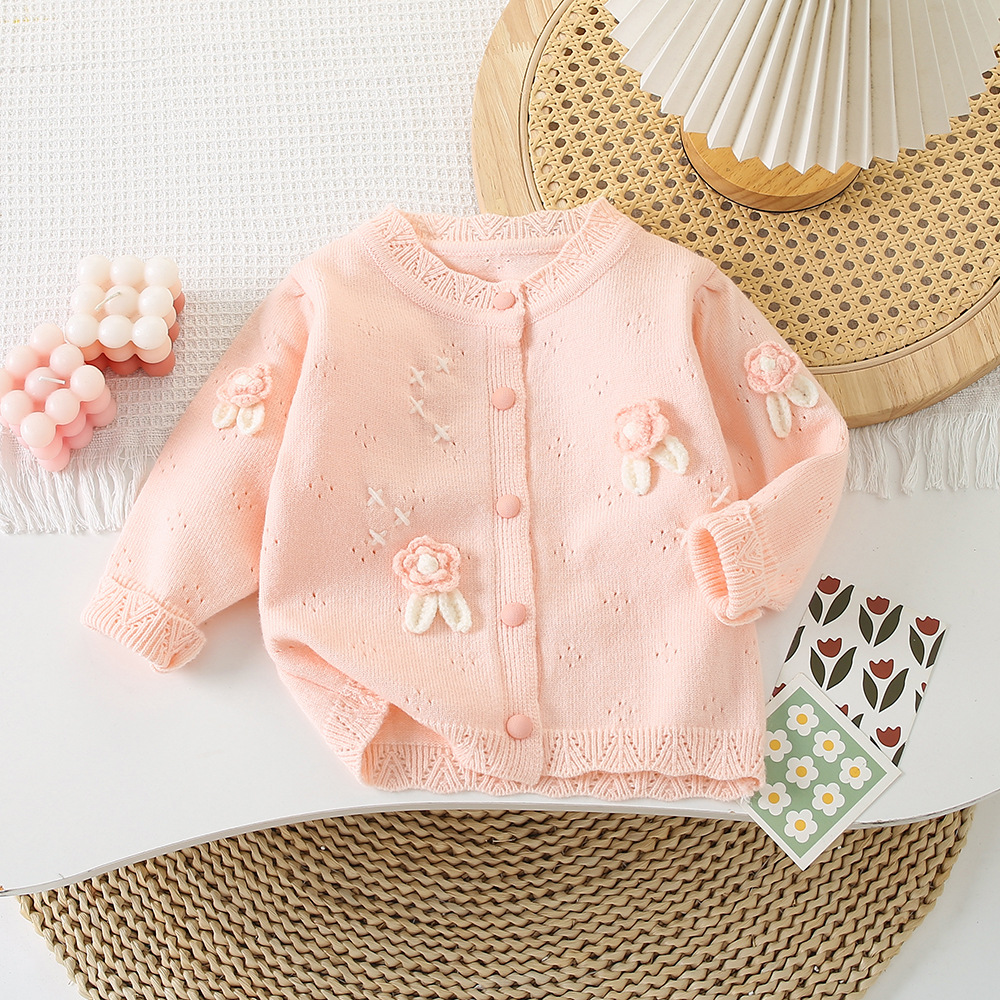 Корейская версия детской одежды 2024 весенняя новая модель девушки иностранный черный вязаный свитер детский свитер кардиган куртка