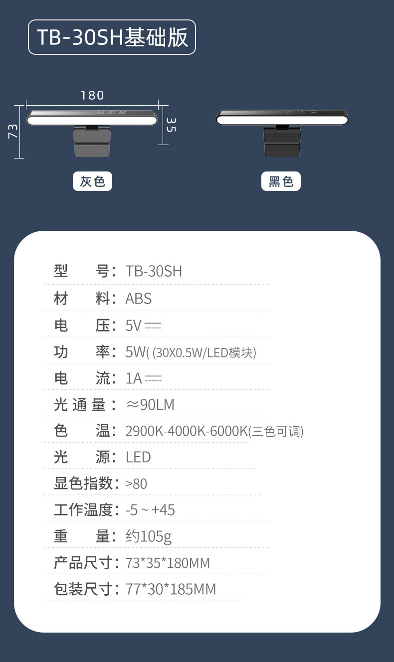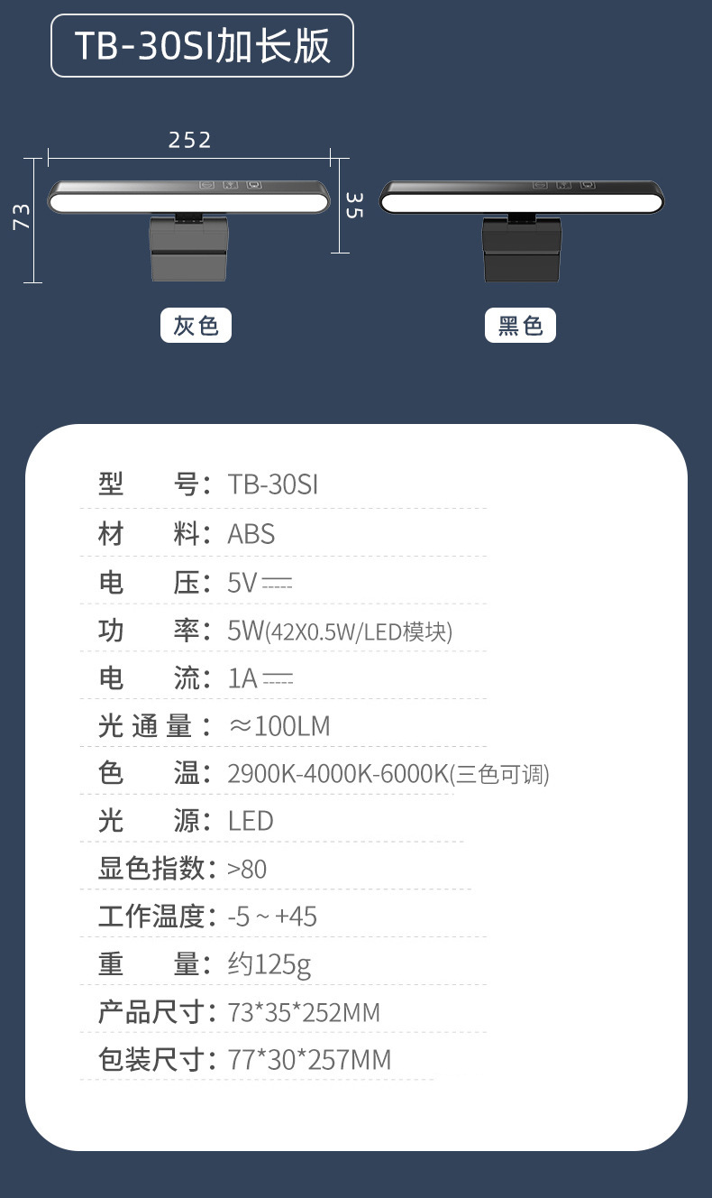 产品型号:TB-30SI(灯长250MM)笔记本屏幕挂灯(插电款) 30SH:180MM