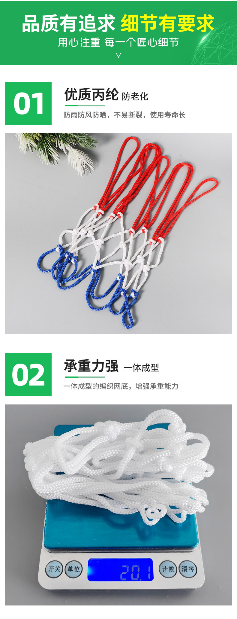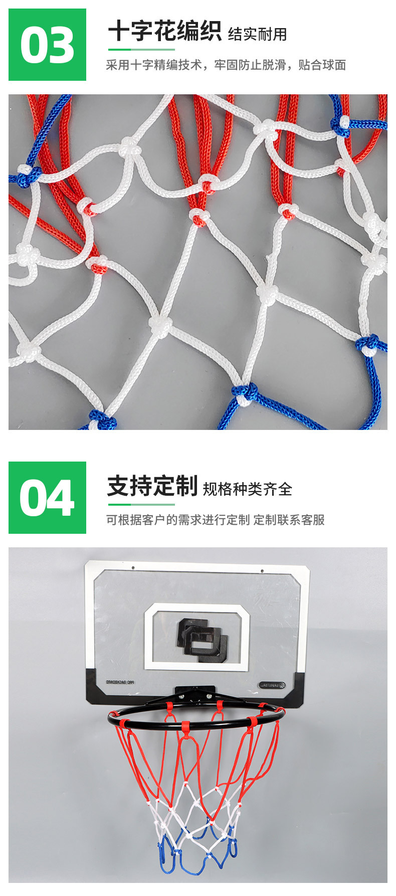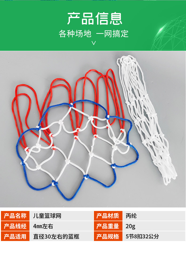 Детская баскетбольная сетка оптом, 32 см, 8-9 отверстий, полипропилен.