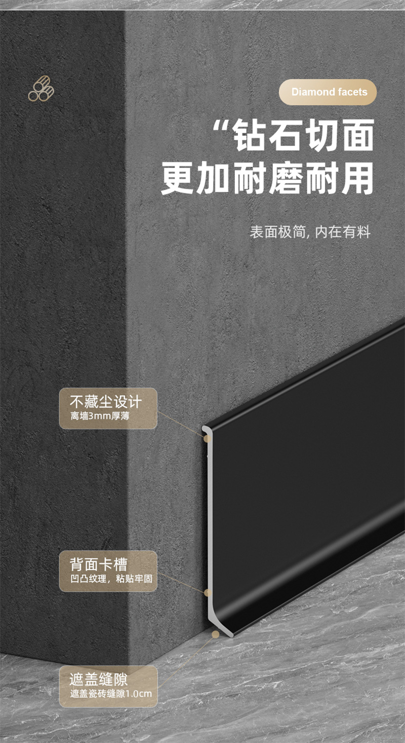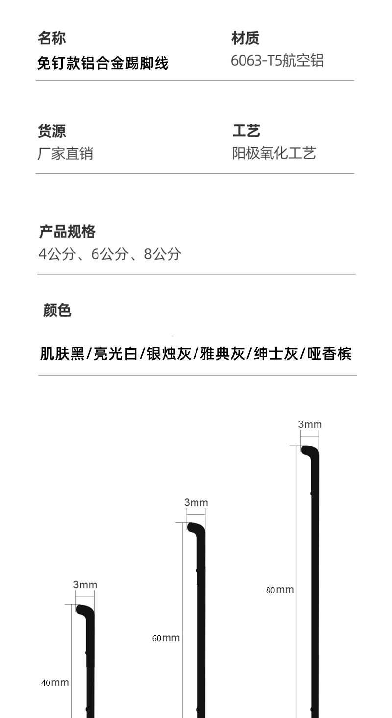 Алюминиевый плинтанчик самоклеящийся бесшиповный провод для ног 4cm6cm8 см металлический клей из нержавеющей стали