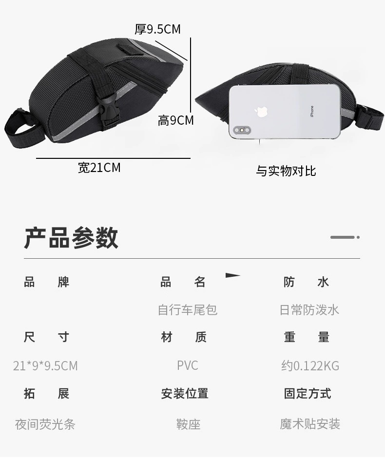 -可长方形设计,扁长设计车座底的自行车使用此包也不易碰到轮胎;