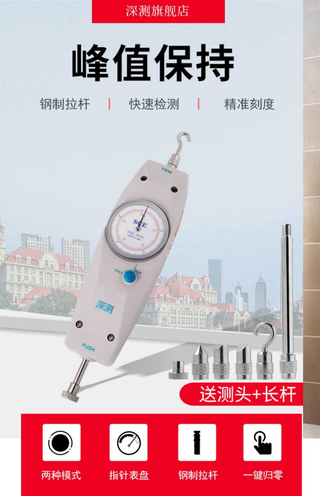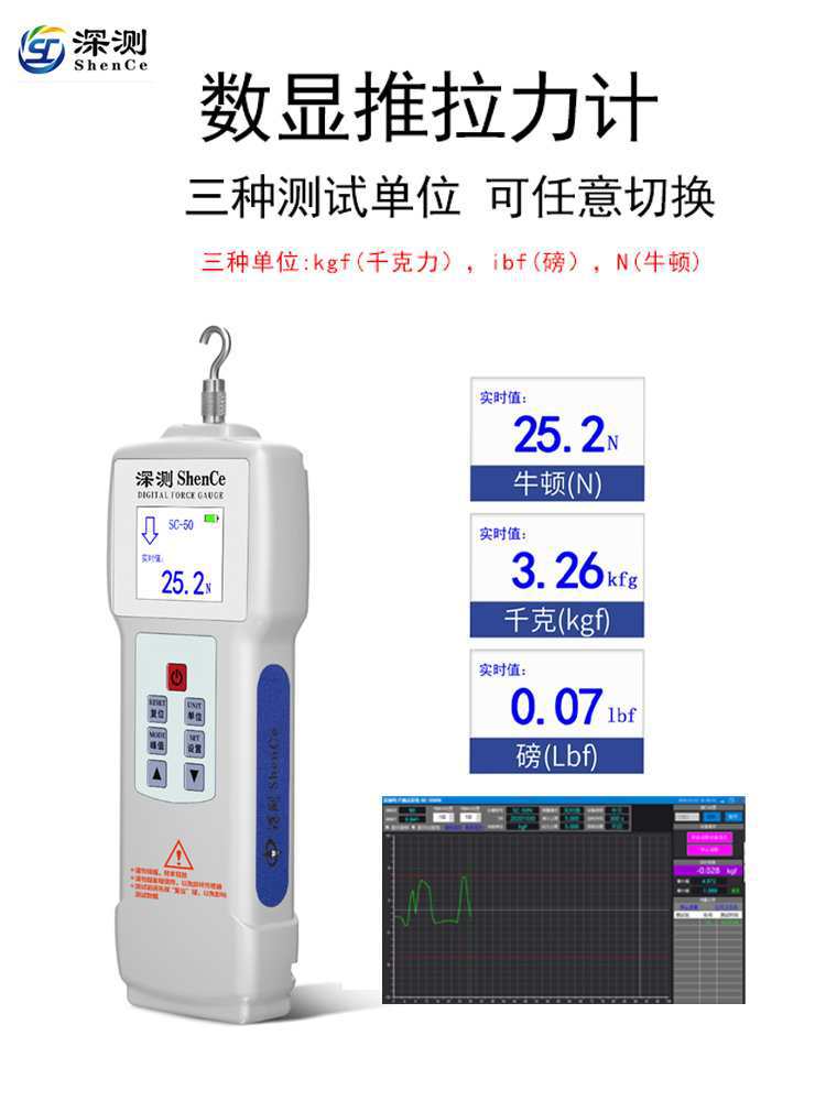 Значение указателя глубокого измерения толкаемого толкаемого манометра тяги давления машина пружинная машина испытания давления электронный силометр