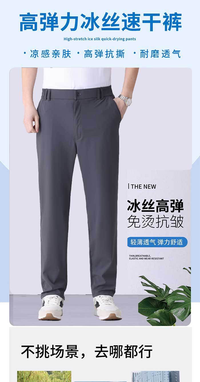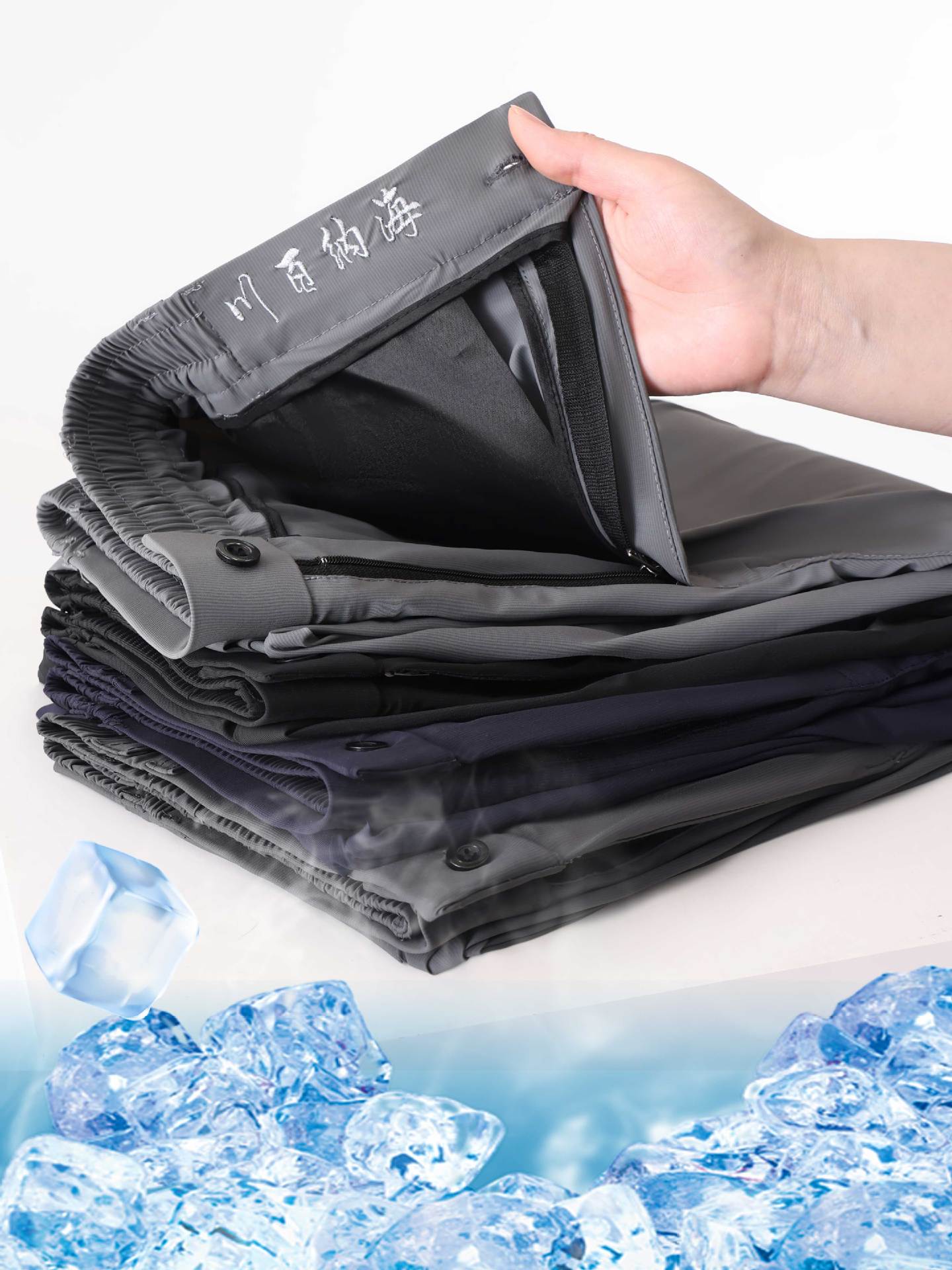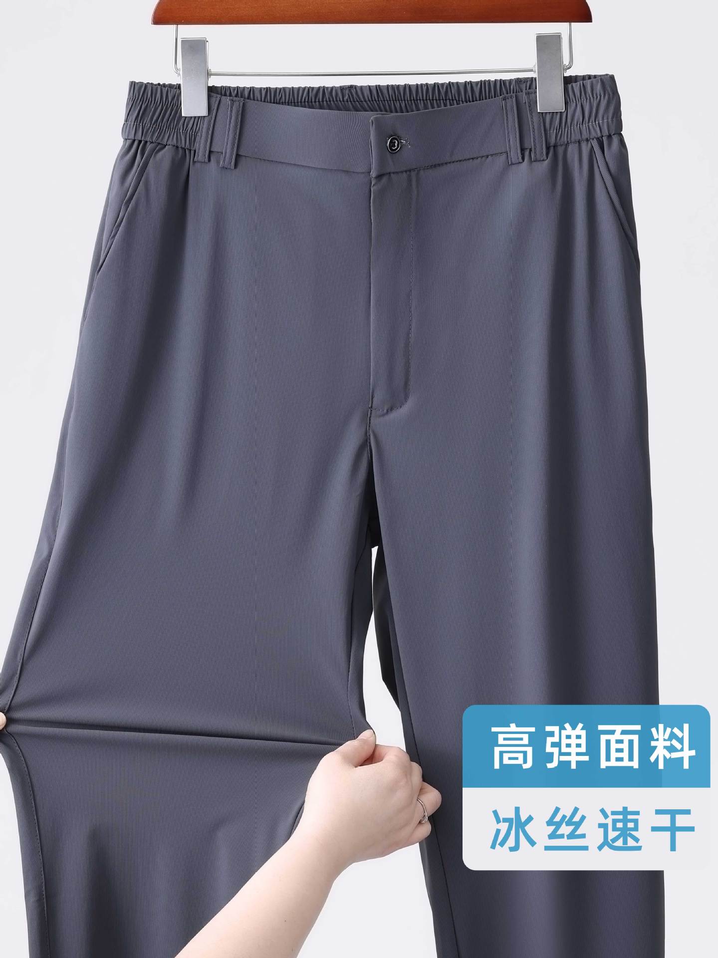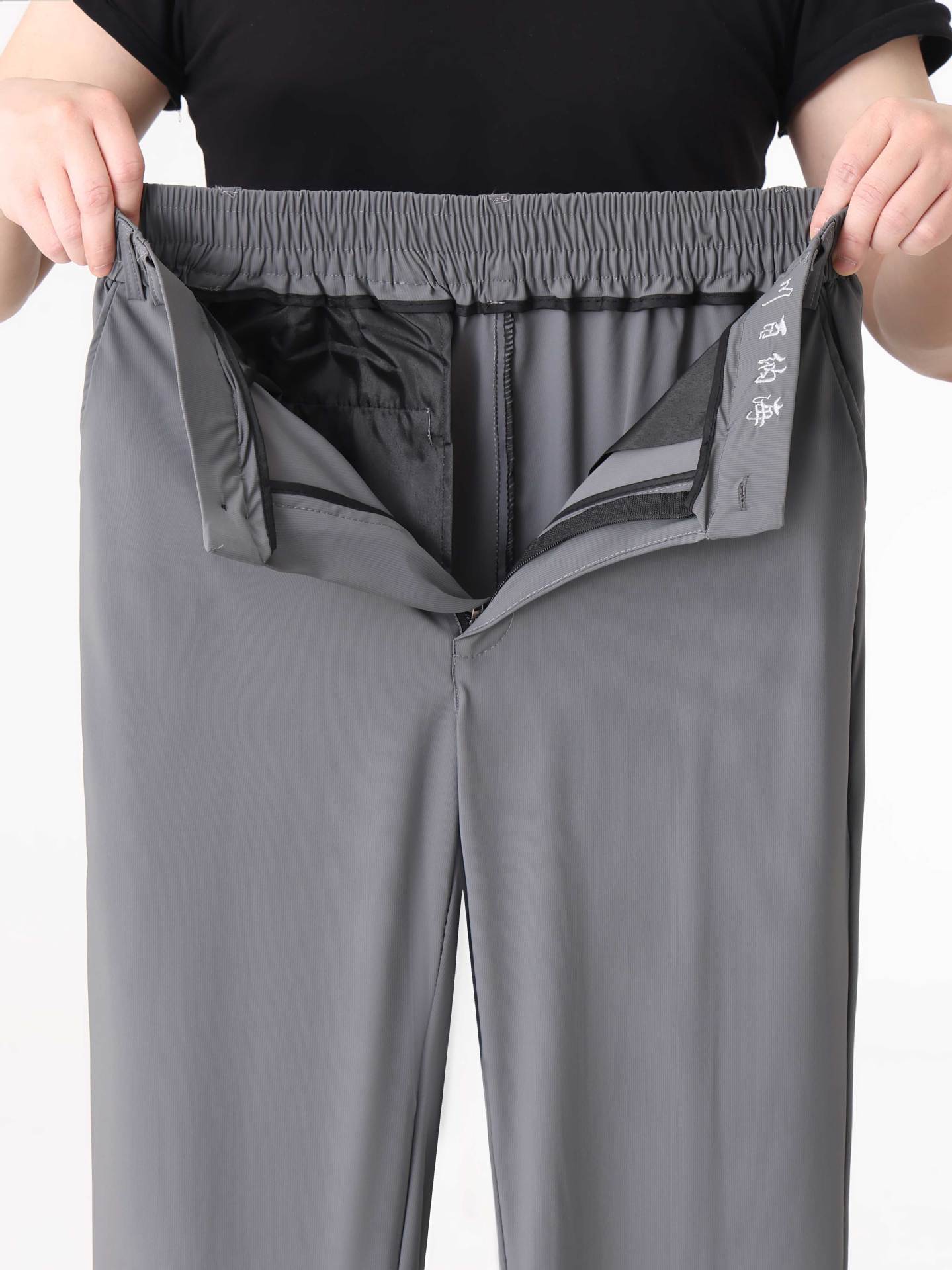 Летние тонкие ледяные шелковые быстрые сушки среднего и пожилого возраста мужские повседневные брюки папы на открытом воздухе спортивные штаны с высокой талией и глубокой промежностью