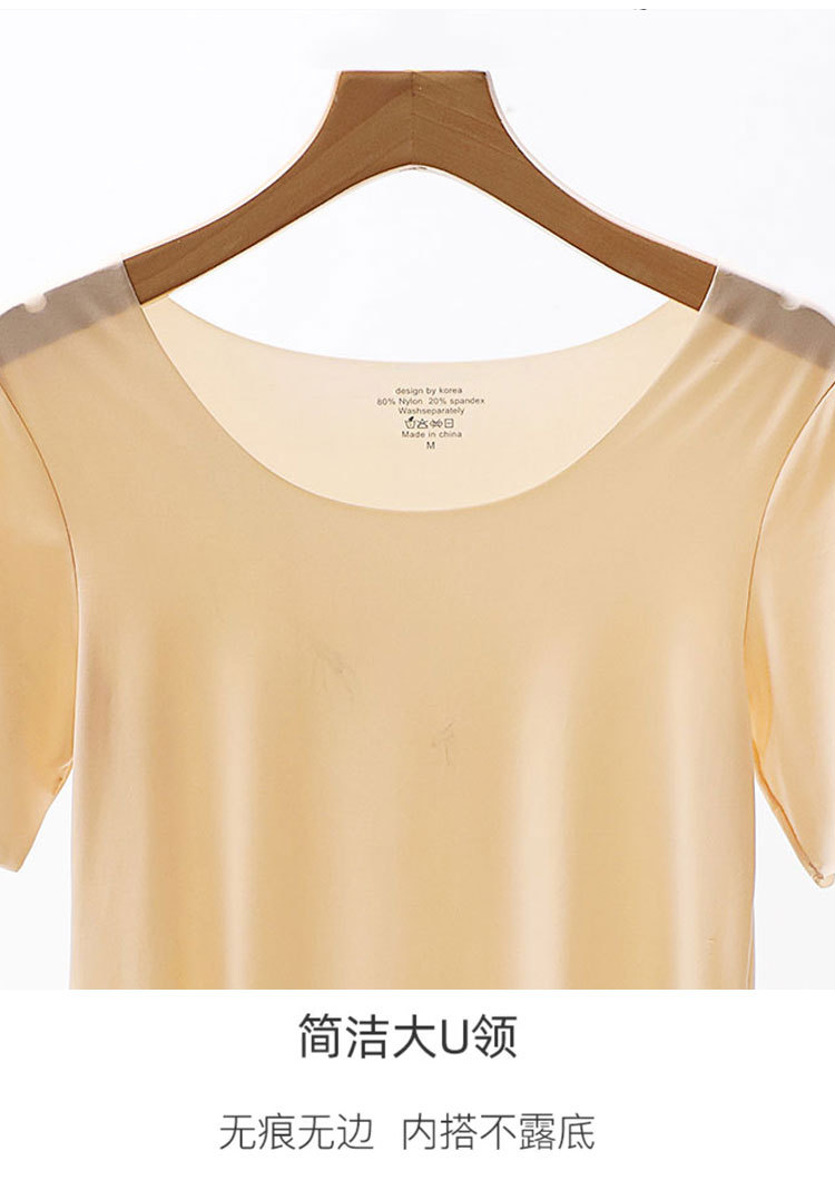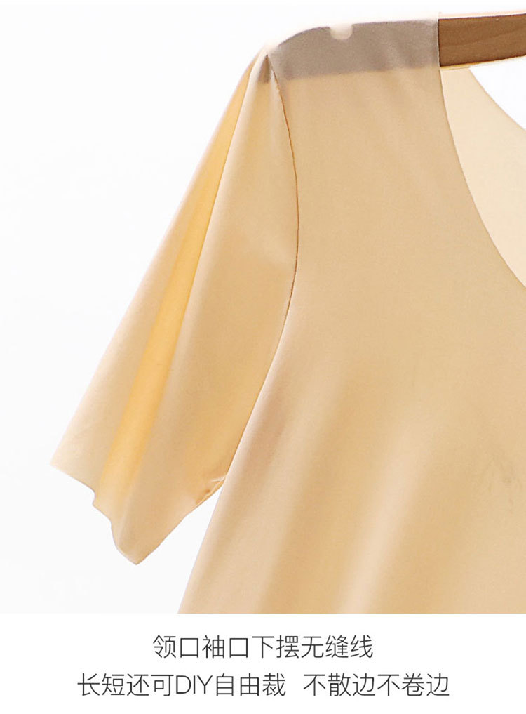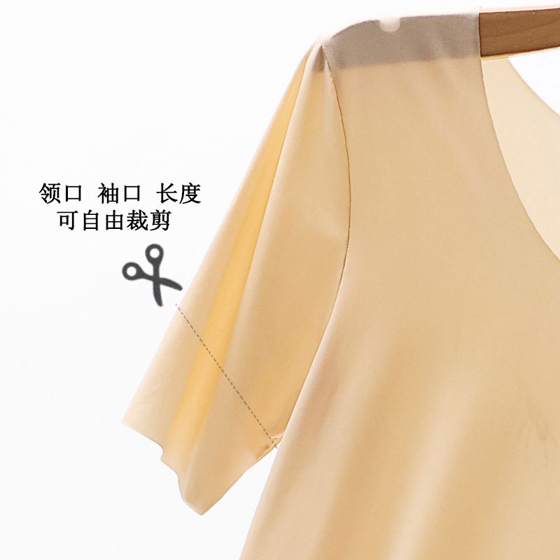 Ся Бинси без следов с короткими рукавами женский телесный цвет с низким вырезом большого размера ультратонкий нижний топ рубашка костюм