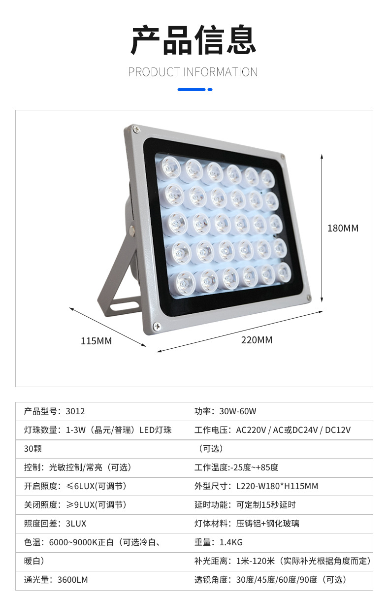 Светодиодный заполняющий светильник мощностью 20W24W30W40W50W100W для мониторинга дорожных парковок и распознавания номерных знаков.