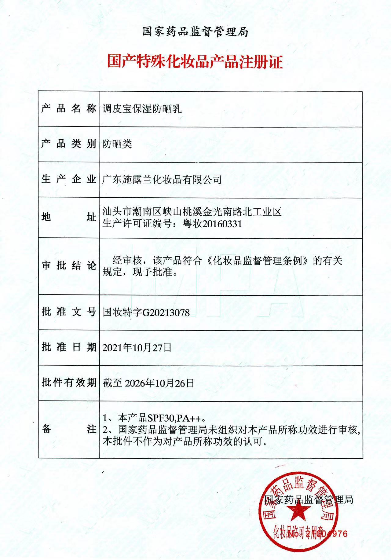 Номер сертификата косметики специального назначения: