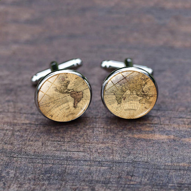 Трансграничные новые ретро-карты мира время Драгоценные запонки Мужская модная рубашка с французскими запонками