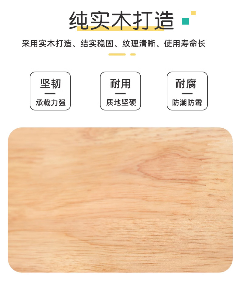 【产品工艺】选用优质进口橡胶木/松木原材料,表面均无黑疤,光滑自然,经躲到工序加工,优质净味漆,环保、安全、无异味,美观大方请放心使用。