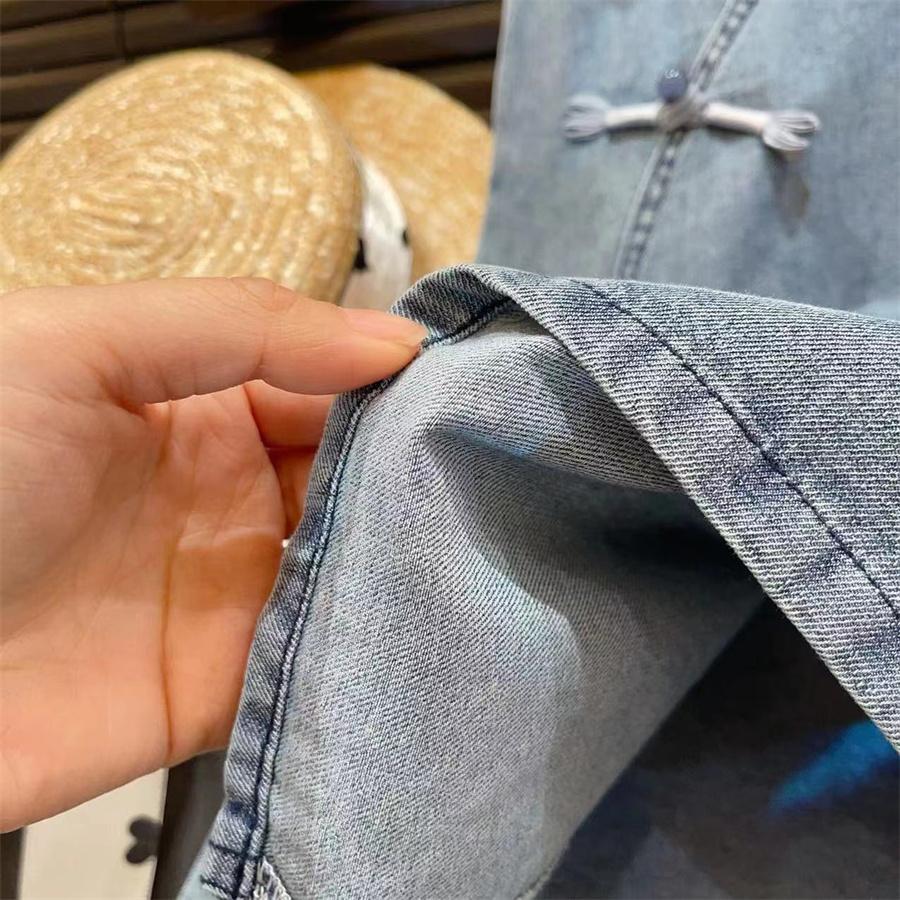 Джинсовая юбка для девочек 2024 лето новый китайский стиль с пряжкой летающий рукав тонкий мягкий джинсовое платье L55180