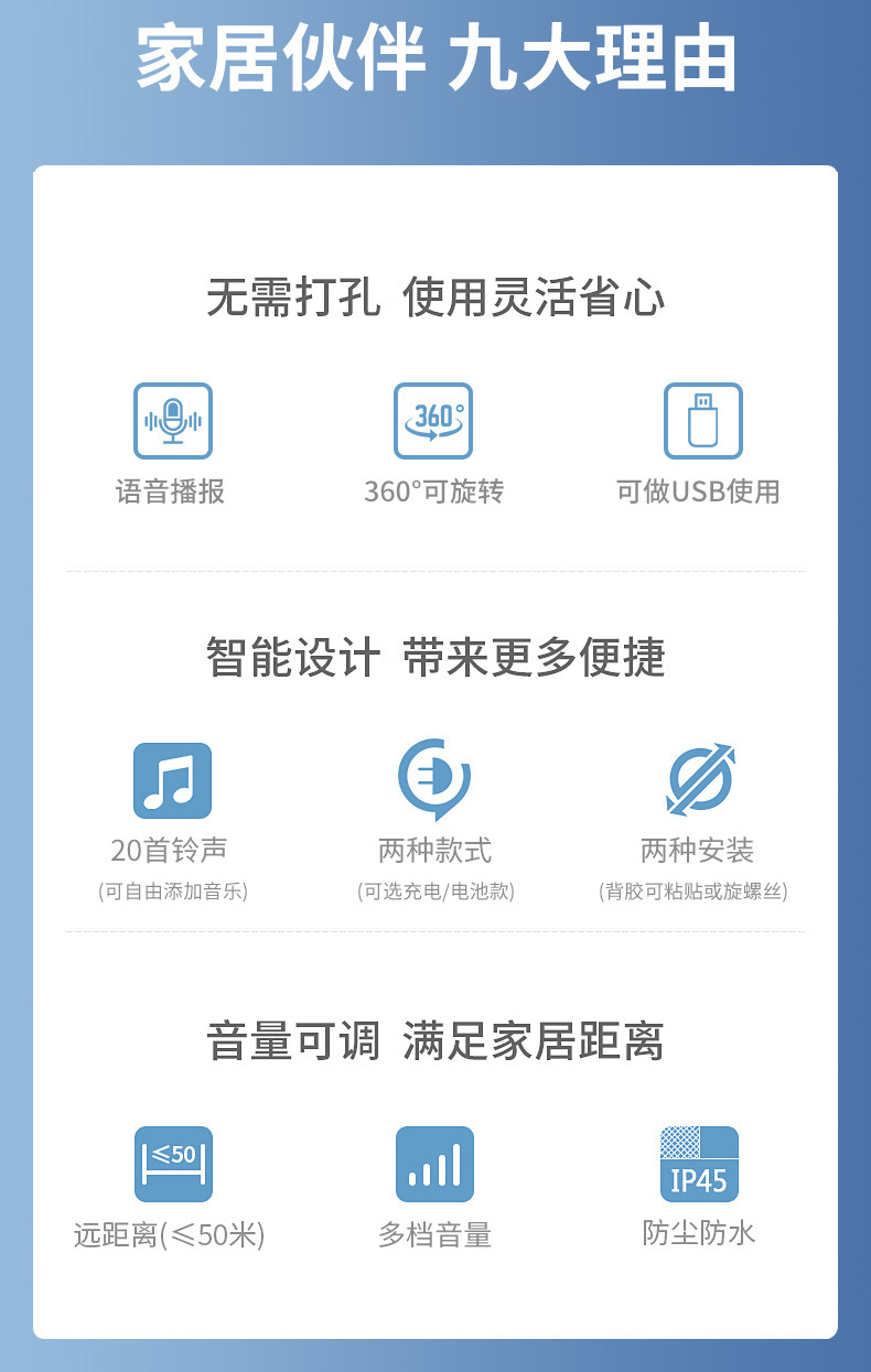 Трансграничный Портативный 360 градусов поворотный пульт дистанционного управления мини портативный дверной звонок беспроводной домашний вызов перезаряжаемый дверной звонок
